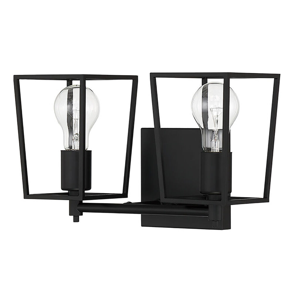 Transitional flat black 2-light bathroom light