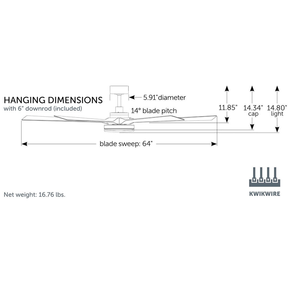 The following are detailed specifications about the Fanimation Fans Torchaire 64 Black LED Ceiling Fan with Light.
