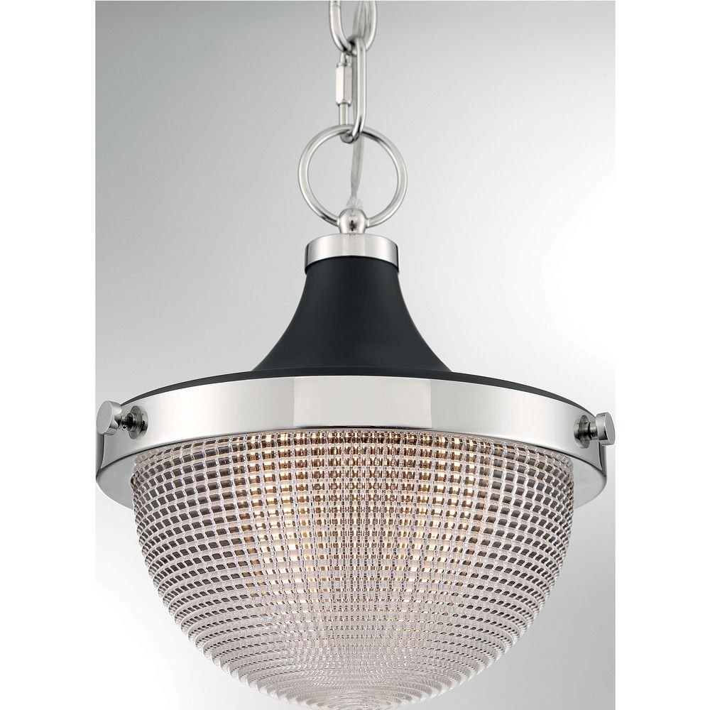 Transitional polished nickel / black accents 1-light pendant light with prismatic clear glass shade