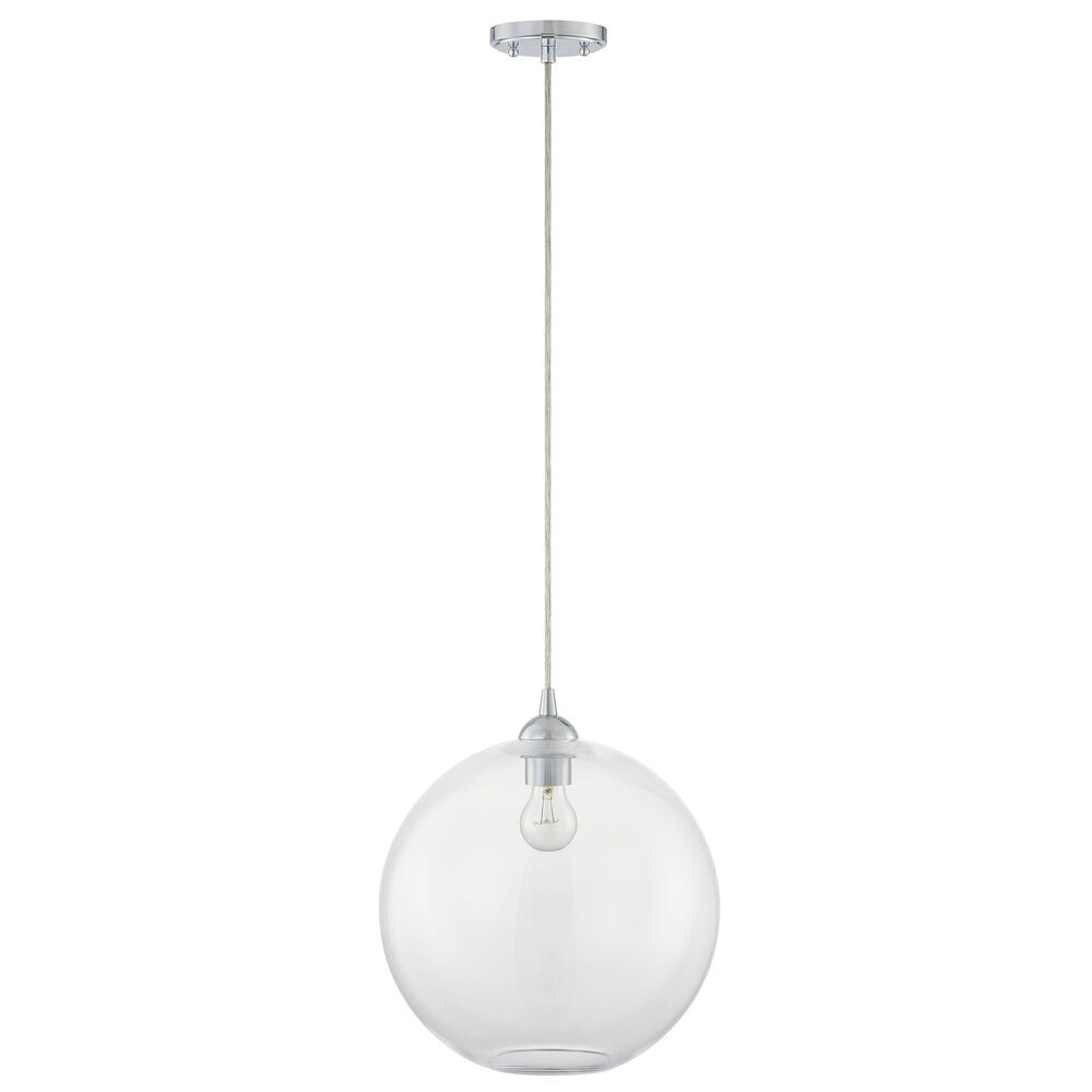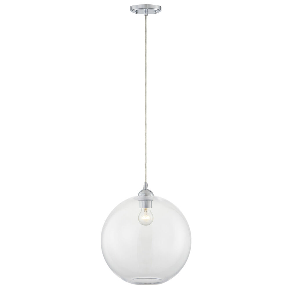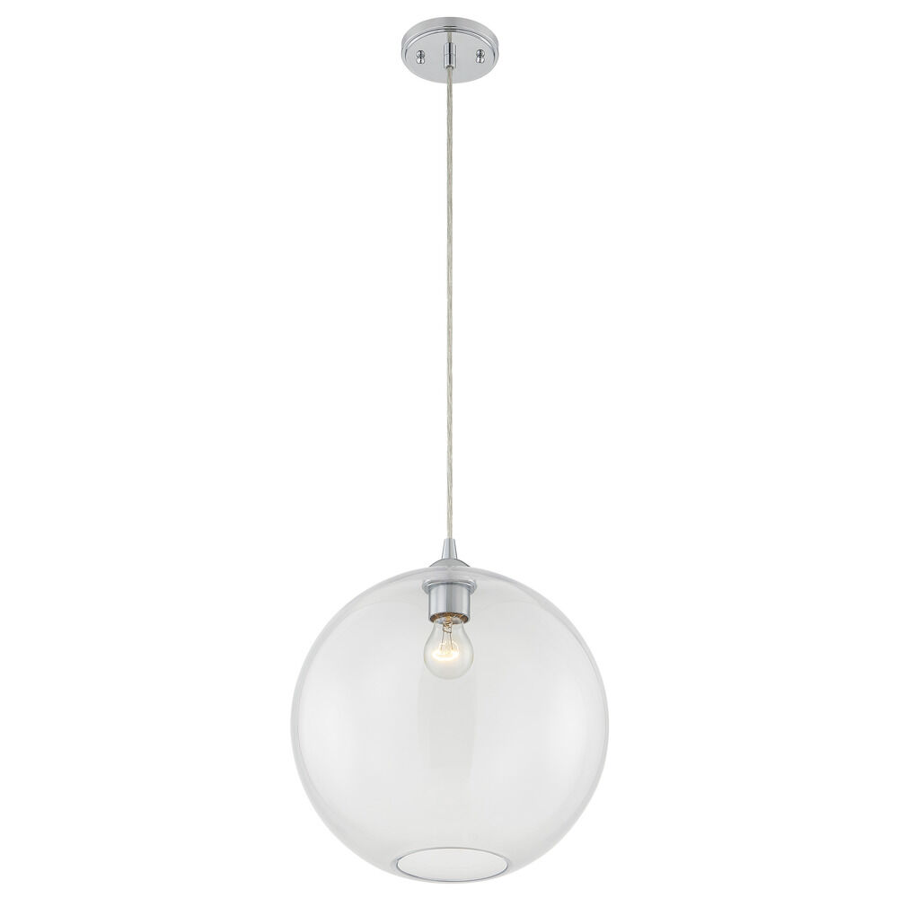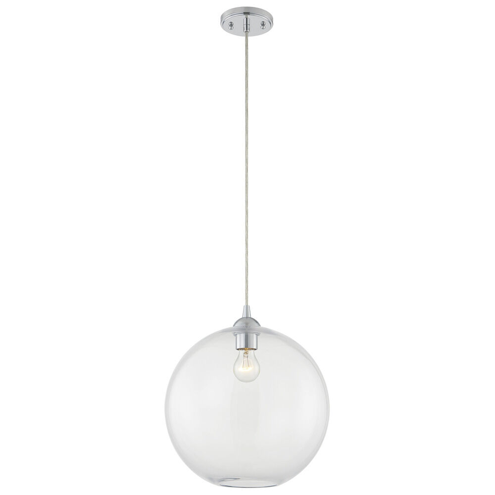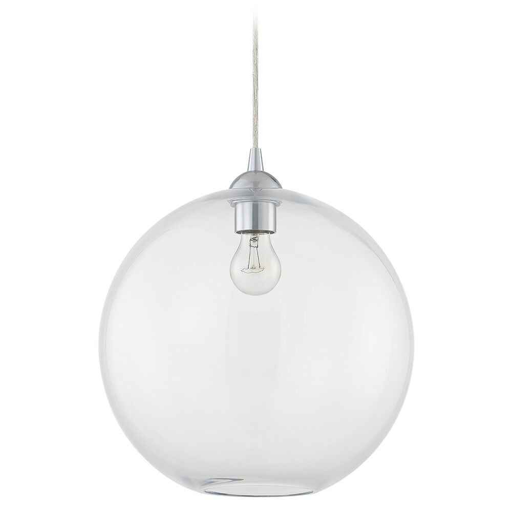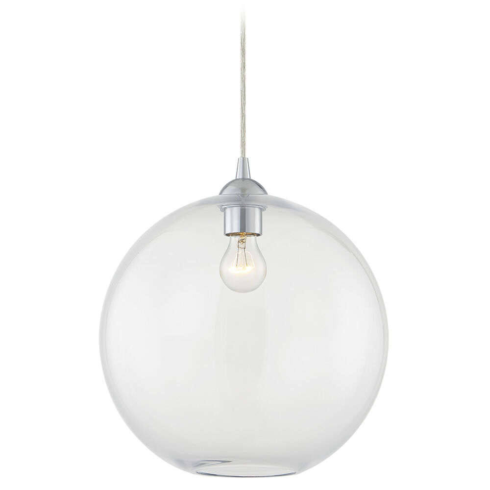 13-Inch Gala Clear Globe Chrome Cord Hung 10-Foot - Mix And Match Fuse - Island Clear Glass Globe 13-Inch Width 12.5-Inch Height