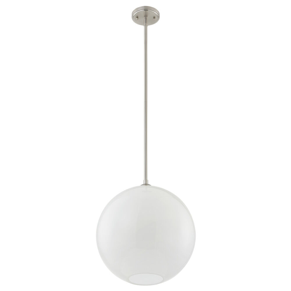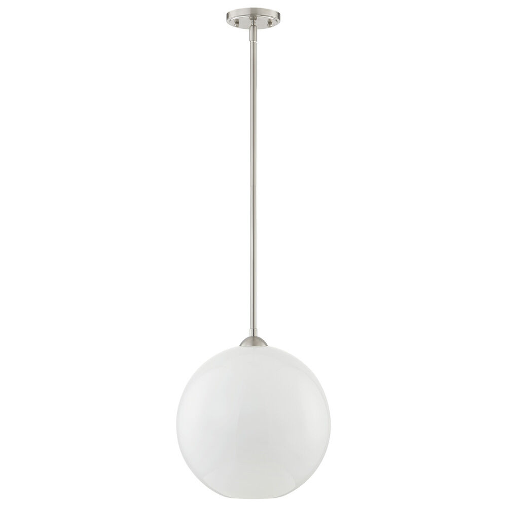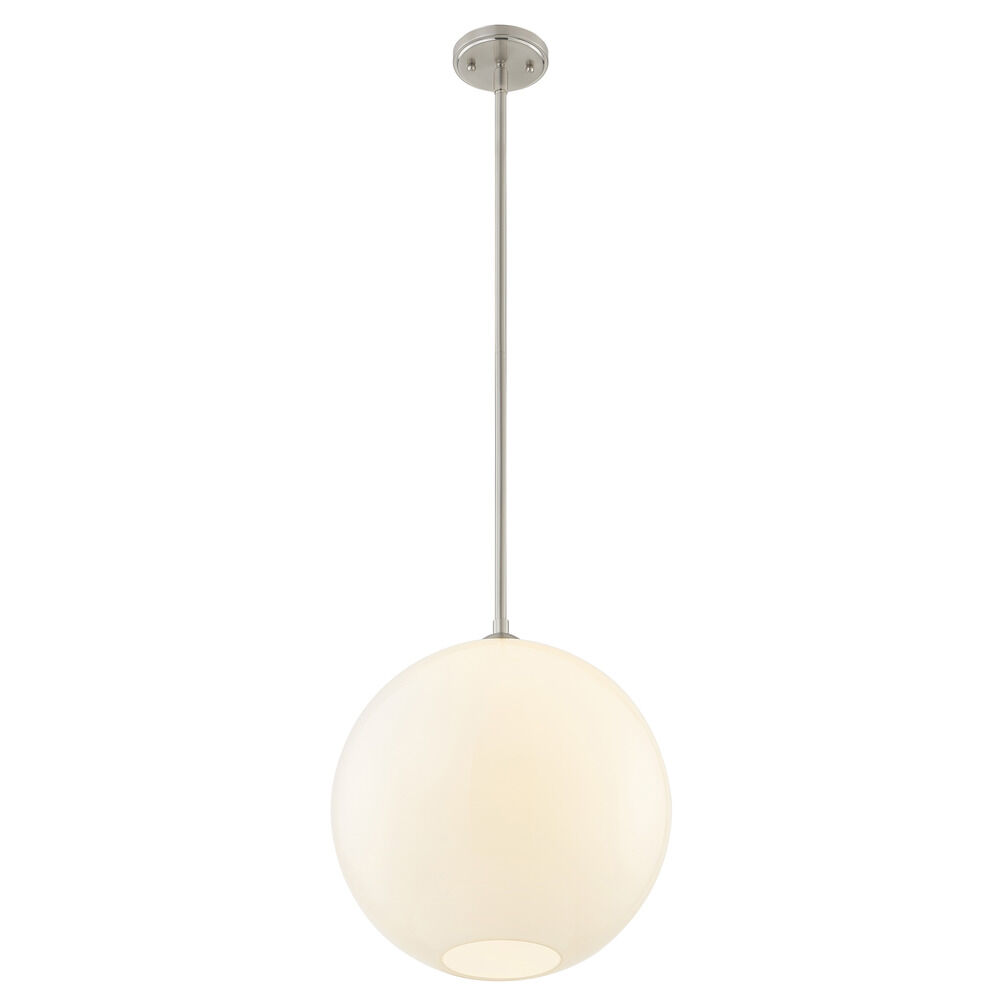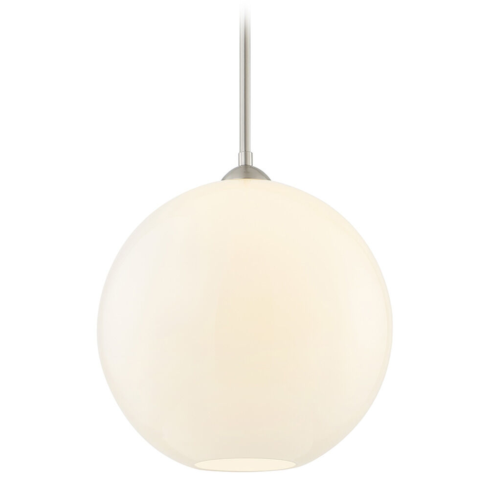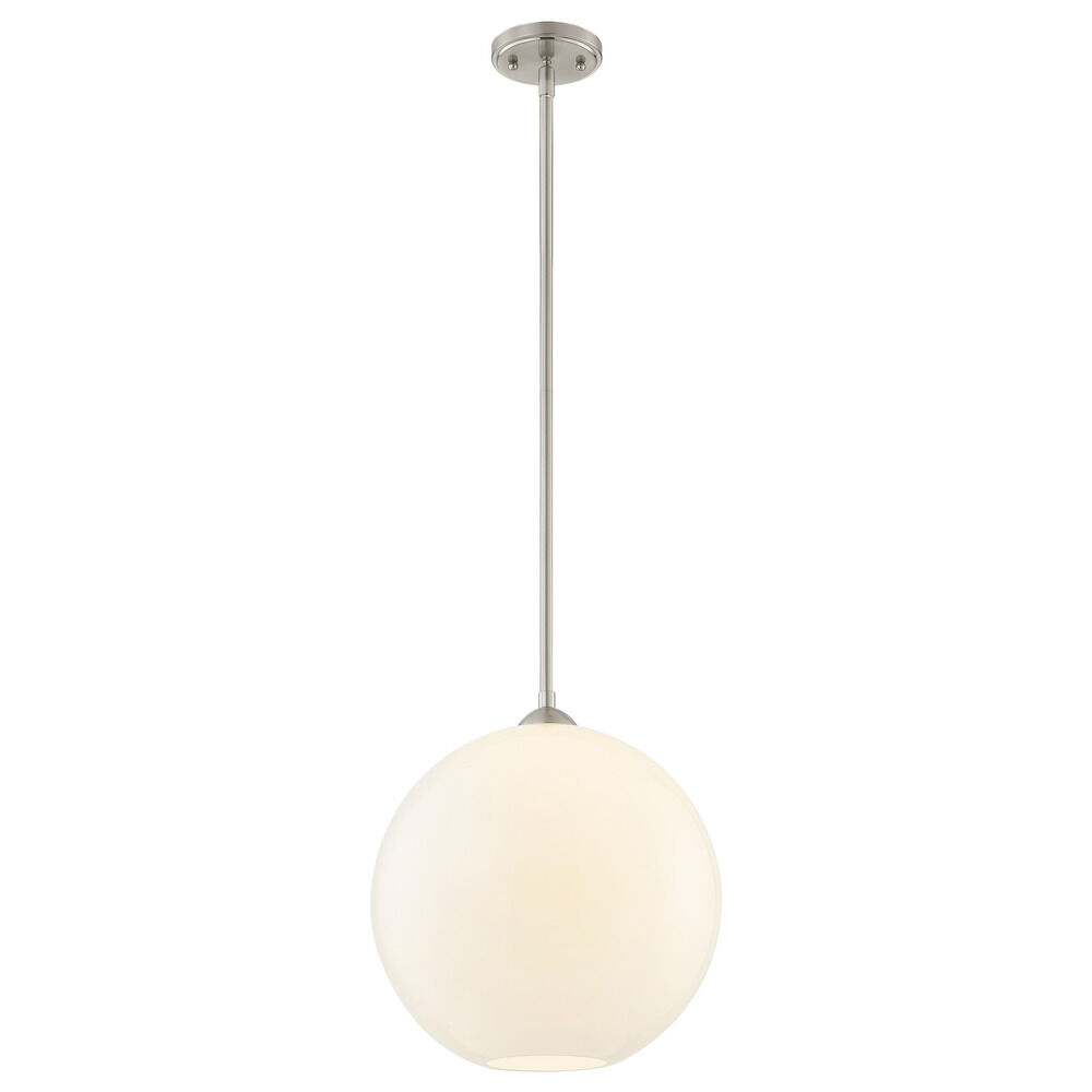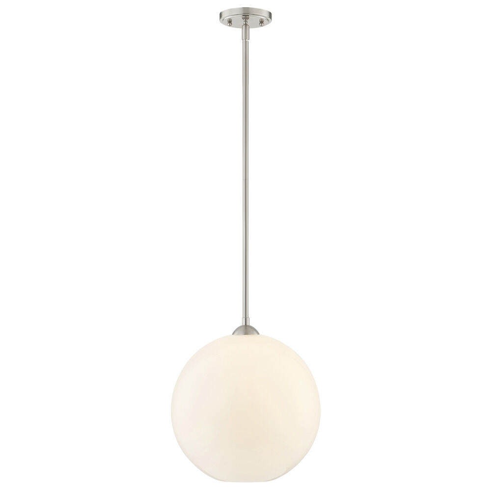 13-Inch Gala Milk White Globe Satin Nickel Island Stem Hung Includes 1x6-Inch and 3x12-Inch Stems - Mix And Match Fuse - Do Not Exceed 5 Stem Segments - Milk White Globe 13-Inch Width 12.5-Inch Height