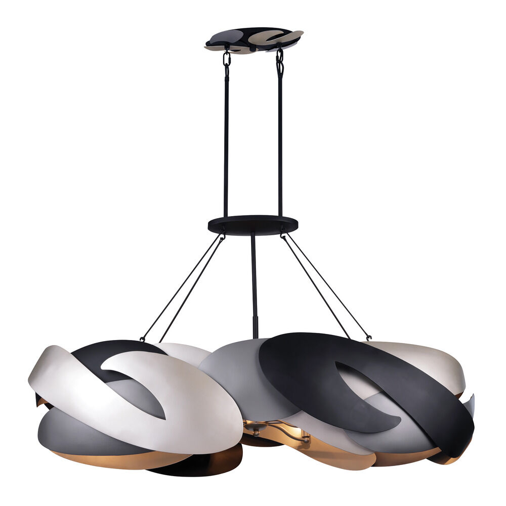 Contemporary / modern coal black & atlas & midnight sliver 6-light pendant light with coal black & atlas & midnight sliver metal shade