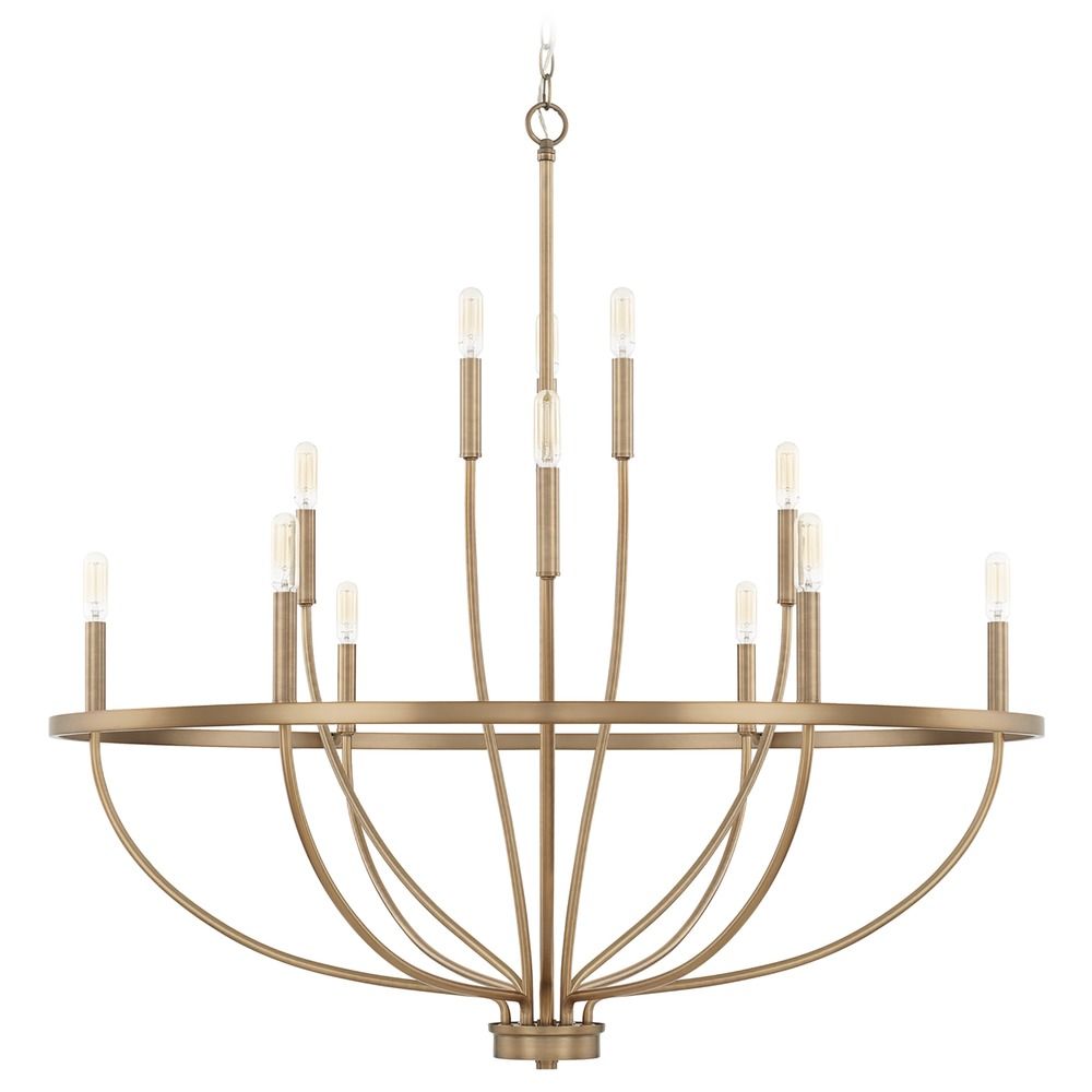 The following are detailed specifications about the Greyson 12-Light Chandelier in Aged Brass by HomePlace by Capital Lighting.