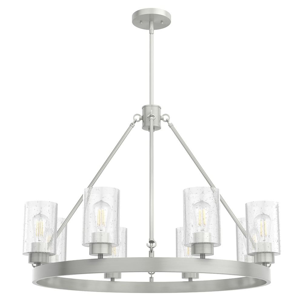Transitional brushed nickel 8-light chandelier with seeded clear glass shade