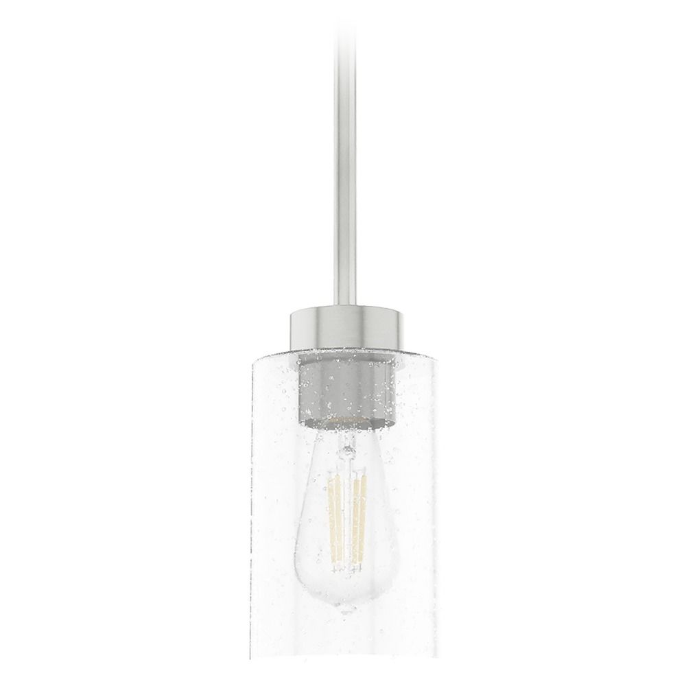 Transitional brushed nickel 1-light mini-pendant light with seeded clear glass shade