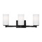 Contemporary / modern midnight black 3-light bathroom light with etched & white inside glass shade