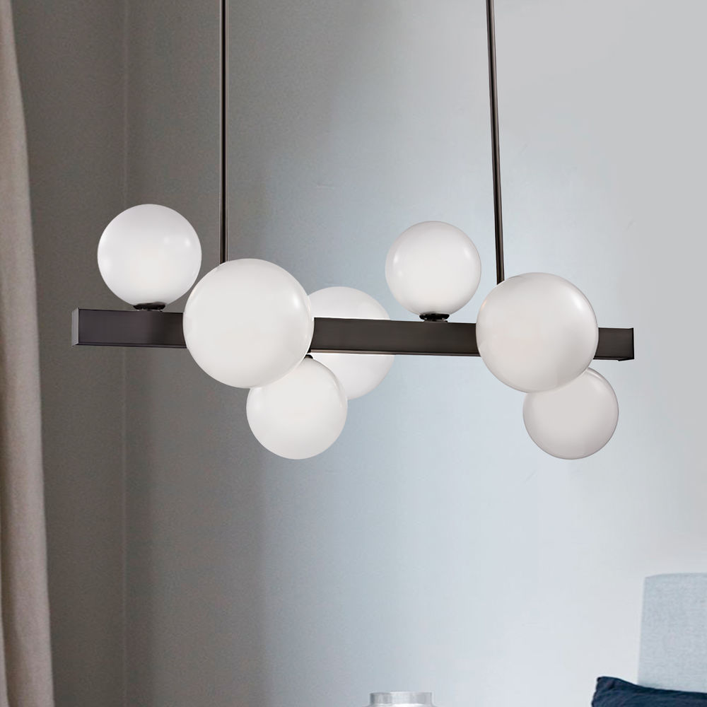 Contemporary / modern old bronze 7-light pendant light with etched,hand blown acid etched glass shade