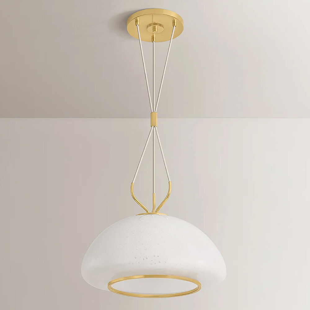 The following are detailed specifications about the Hudson Valley Lighting Baudette Aged Brass LED Pendant Light with Bowl / Dome Shade.