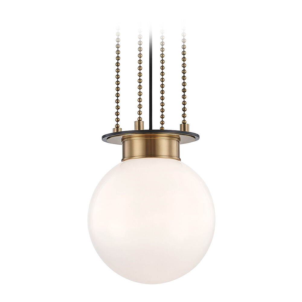 While antique-inspired, the pared-down, clean silhouette of Gunther makes it the perfect transitional pendant. A large opal glass globe provides soft, warm illumination in an entryway, dining room, or bedroom. The delicate ball chains and Aged Old Bronze metalwork enhance the vintage feel. Gunther is available in three sizes.