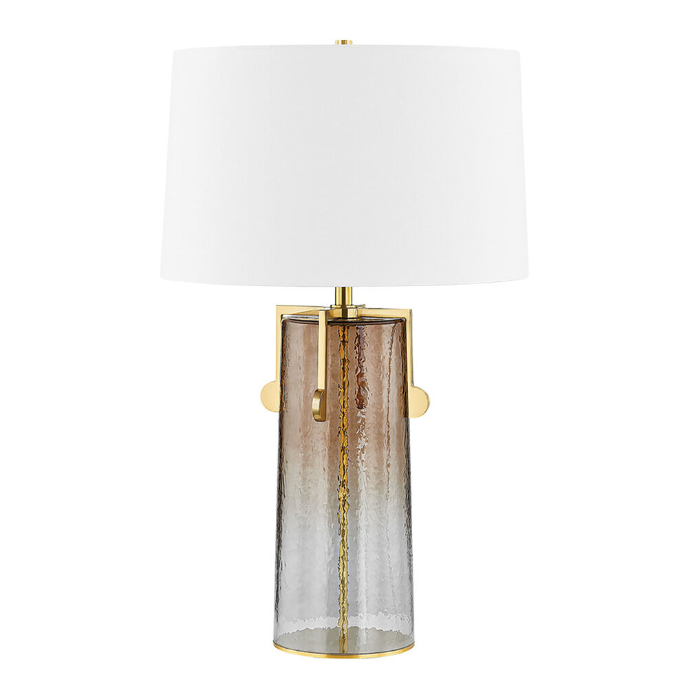 Contemporary / modern aged brass 1-light table lamp with white linen shade