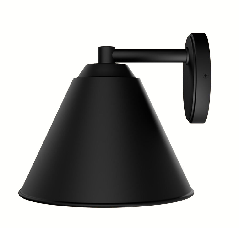 Contemporary / modern matte black 1-light outdoor wall light with matte black metal shade