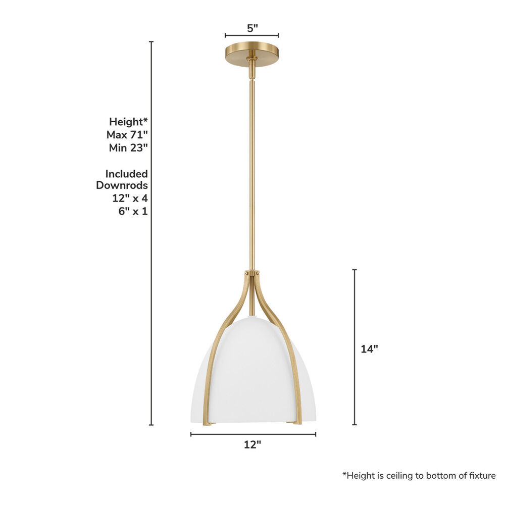 Contemporary / modern alturas gold 1-light pendant light with cased white glass shade