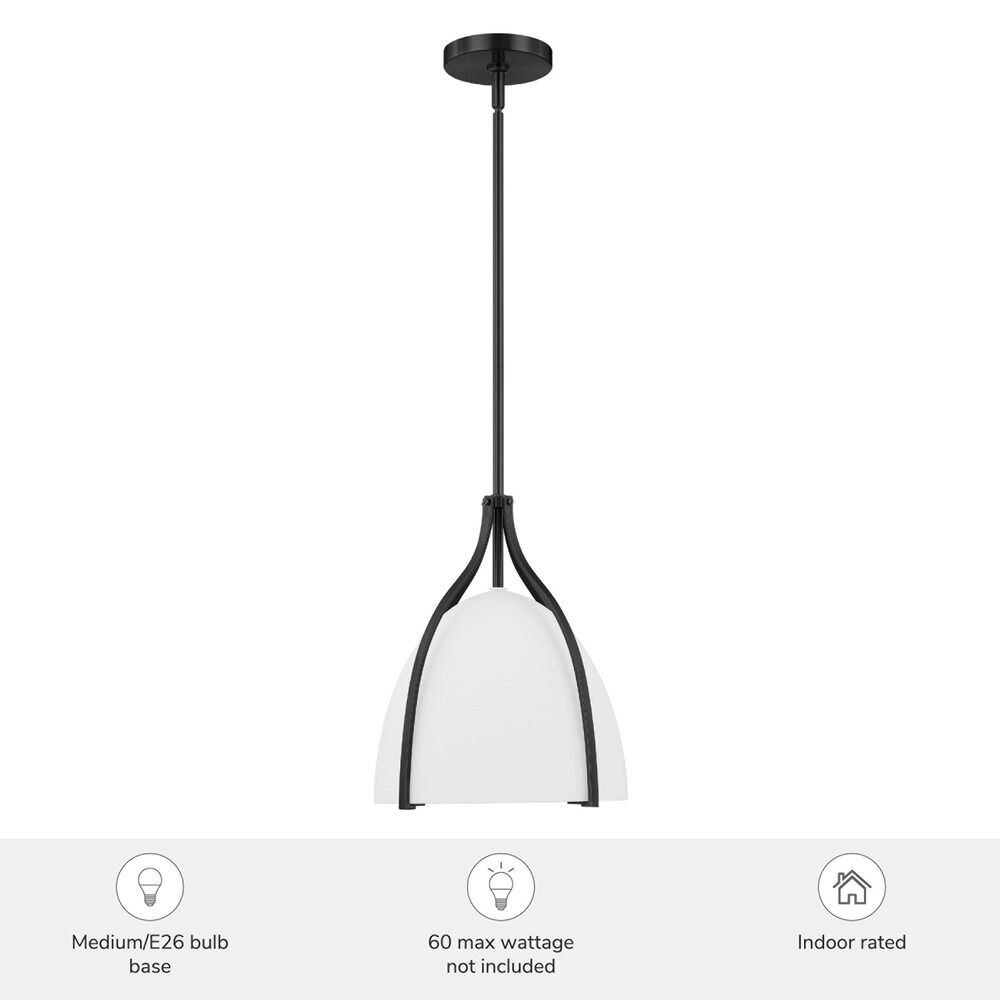 Contemporary / modern matte black 1-light pendant light with cased white glass shade