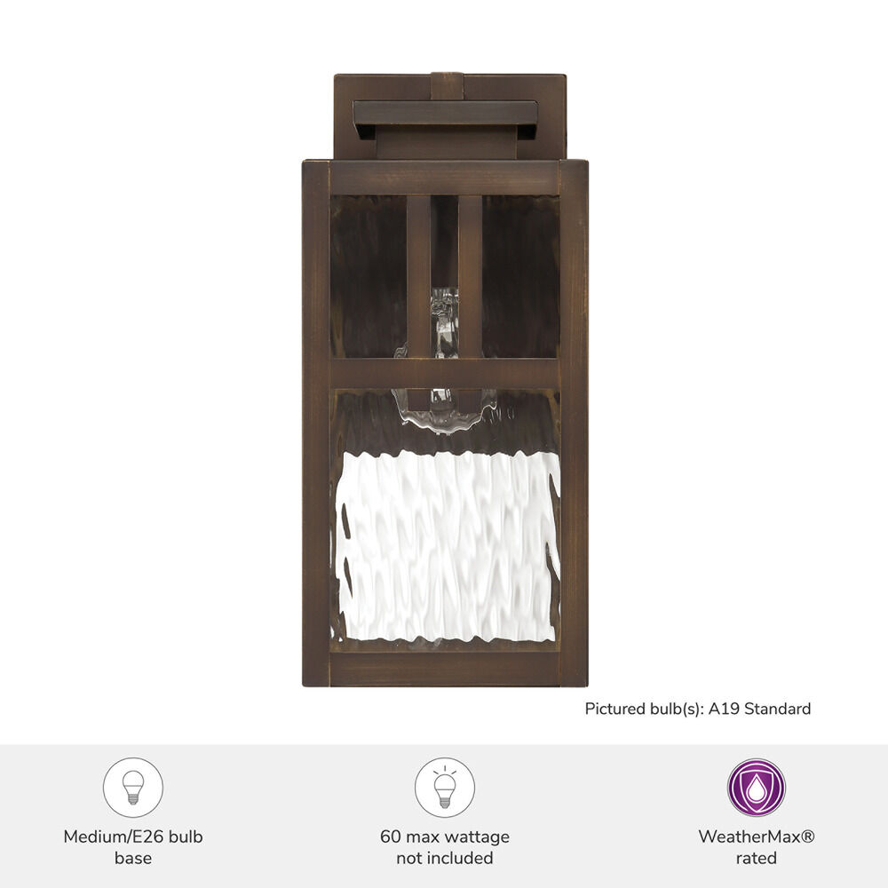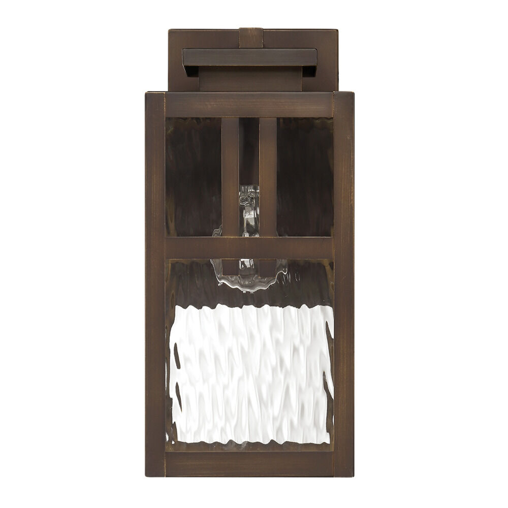Traditional matte bronze 1-light outdoor wall light with clear,textured,water textured water glass shade