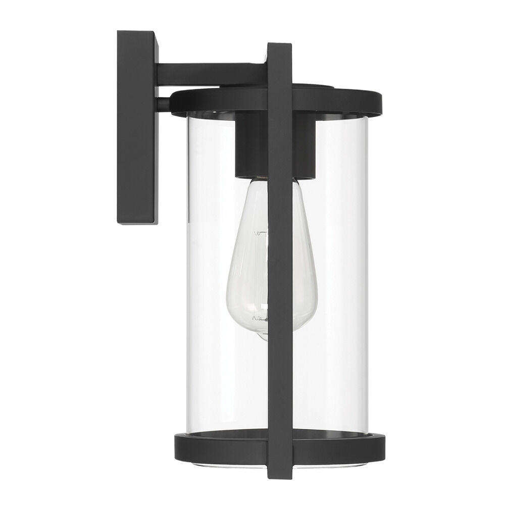 Transitional matte black 1-light outdoor wall light with clear glass shade