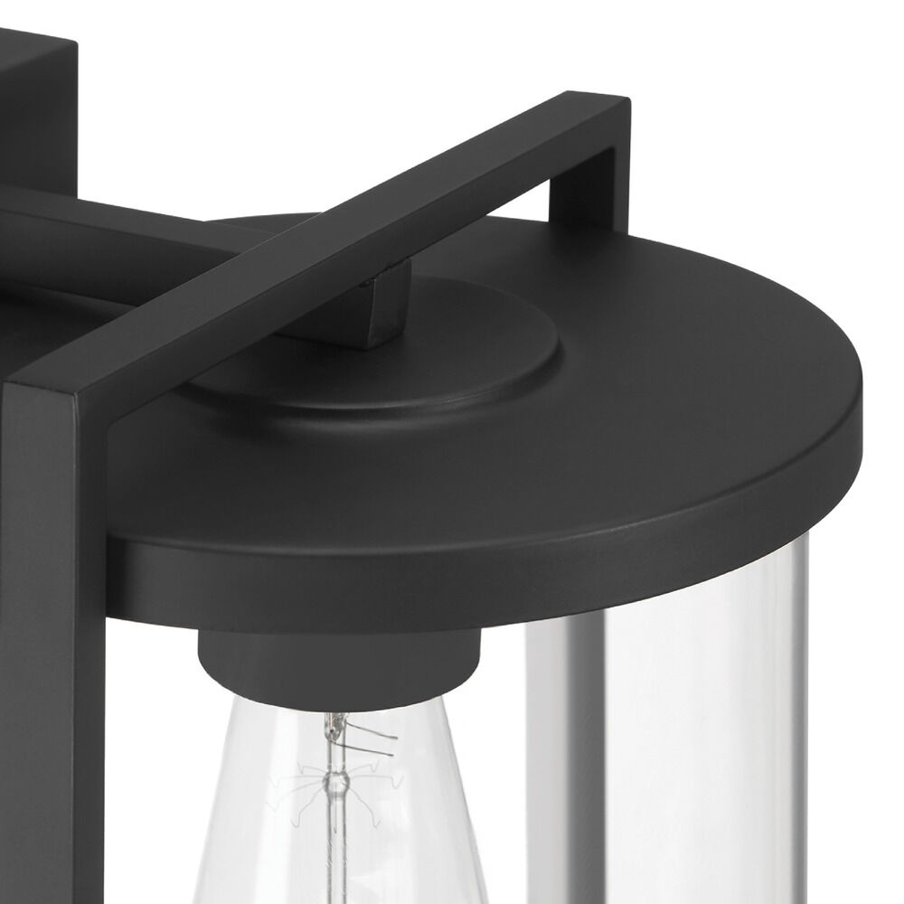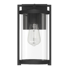Transitional matte black 1-light outdoor wall light with clear glass shade