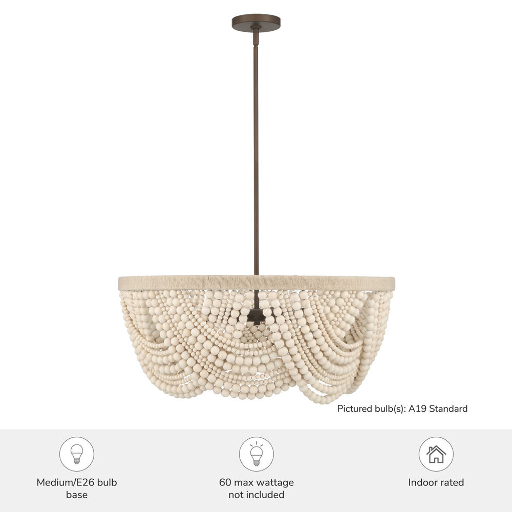 The following are detailed specifications about the Hunter Fan Company Autumndale Matte Bronze Chandelier.