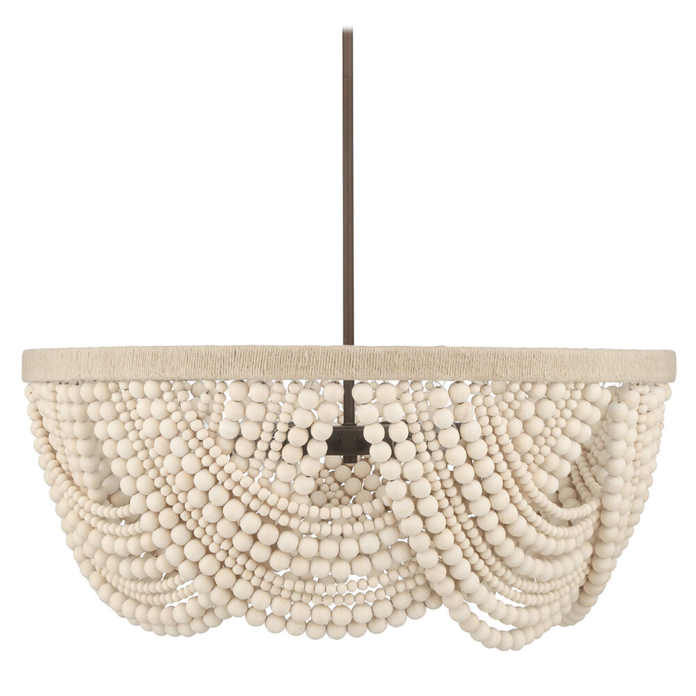 Organic matte bronze 6-light chandelier with natural wood shade