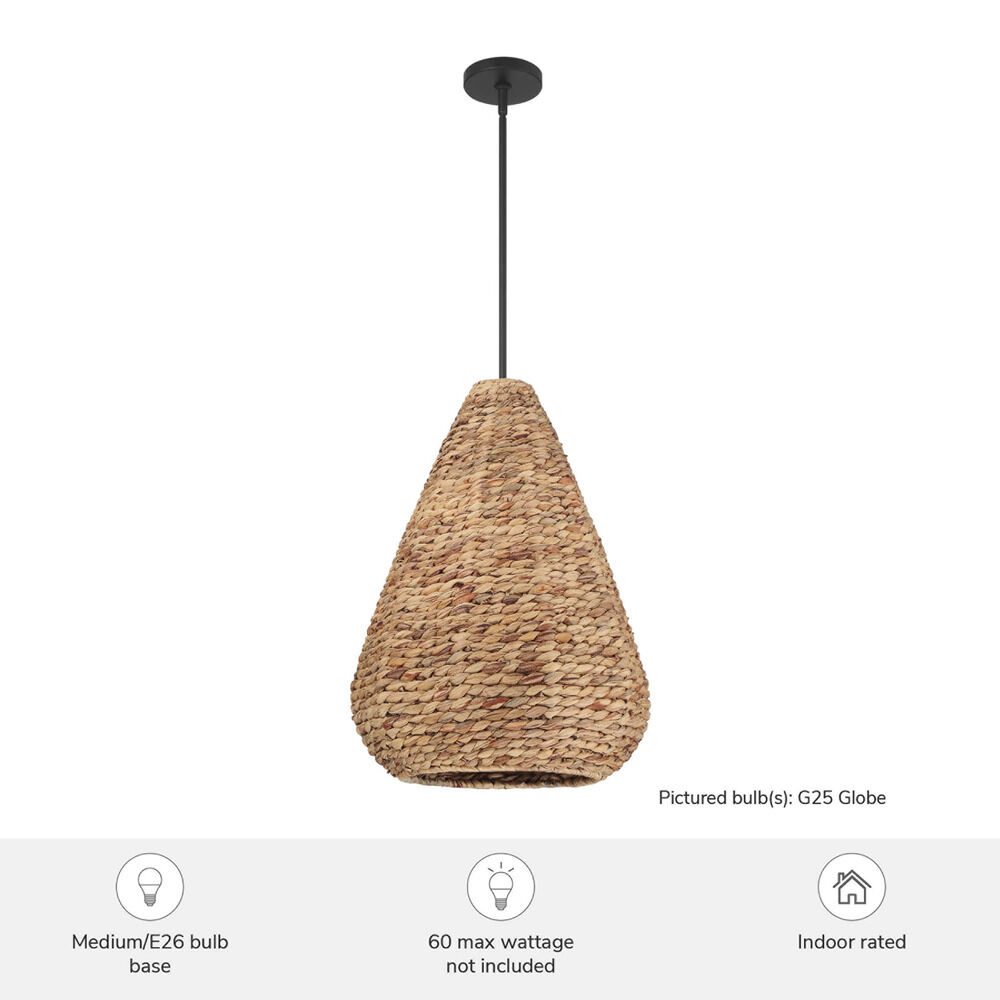 The following are detailed specifications about the Hunter Fan Company Cambria Matte Black Pendant Light with Teardrop Shade.