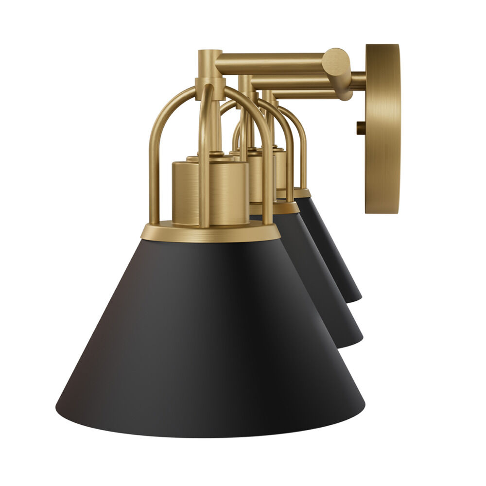 Transitional luxe gold 3-light bathroom light with matte black metal shade