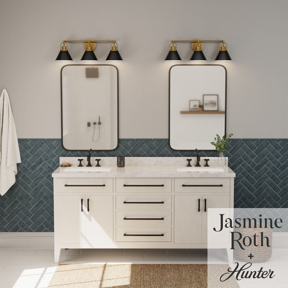 This Hunter Fan Company Carrington Isle Luxe Gold Bathroom Light is part of the Carrington Isle Collection from Hunter Fan Company. The following items are also part of the Carrington Isle Collection.