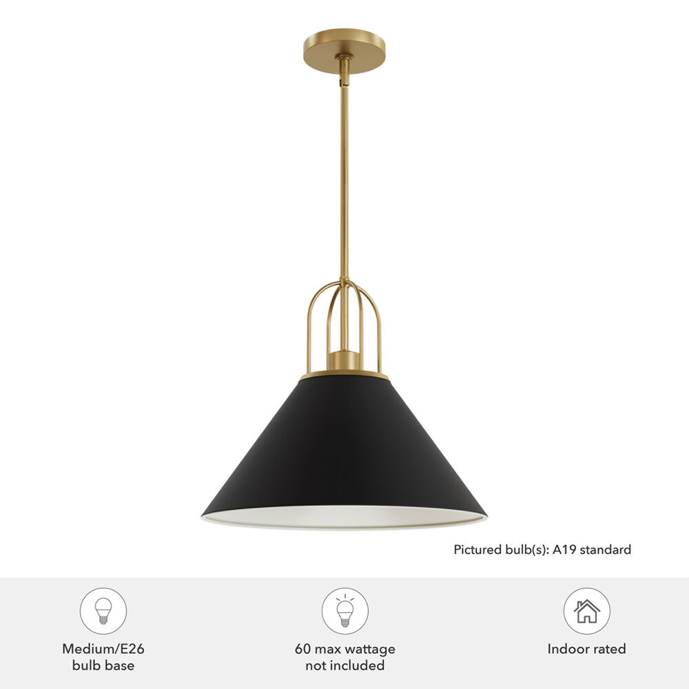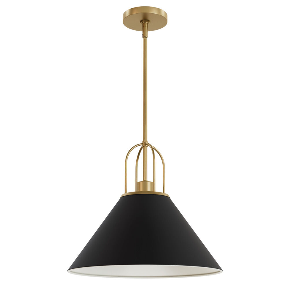 Transitional luxe gold 1-light pendant light with matte black metal shade