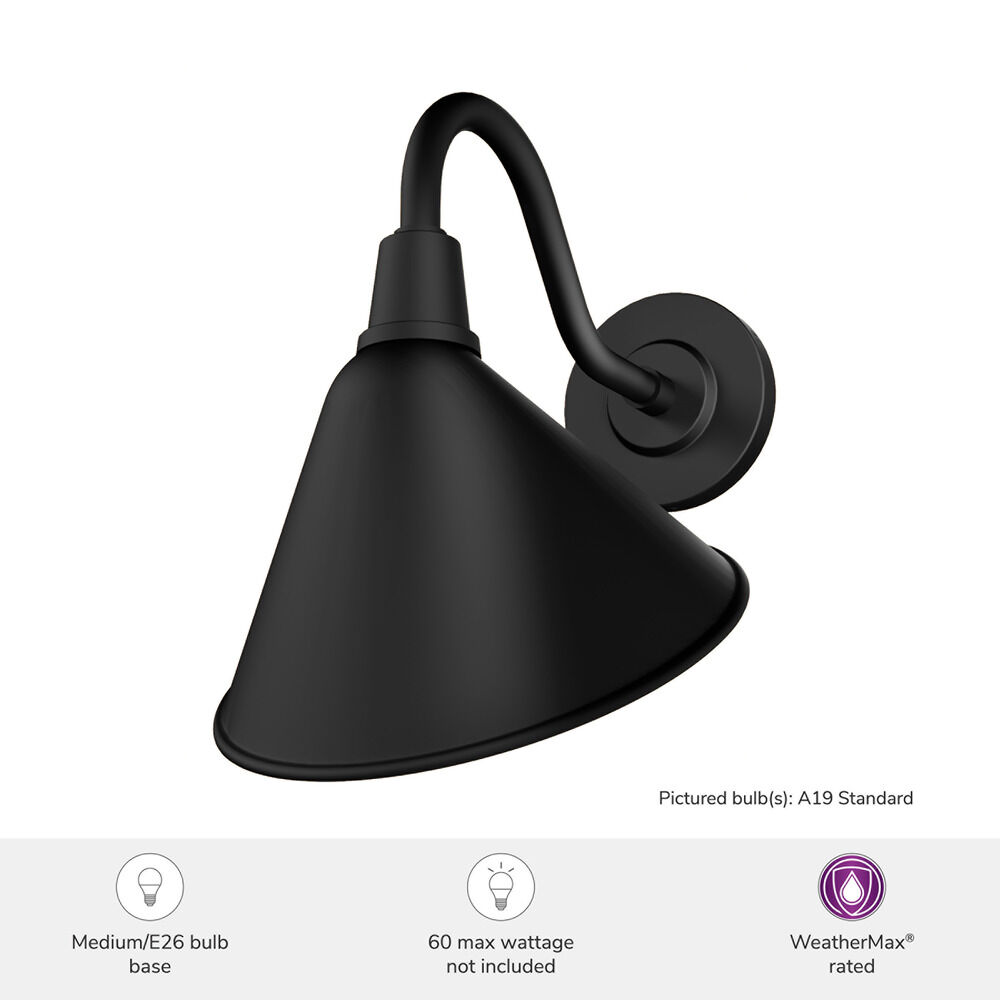 Farmhouse matte black 1-light outdoor wall light with matte black metal shade