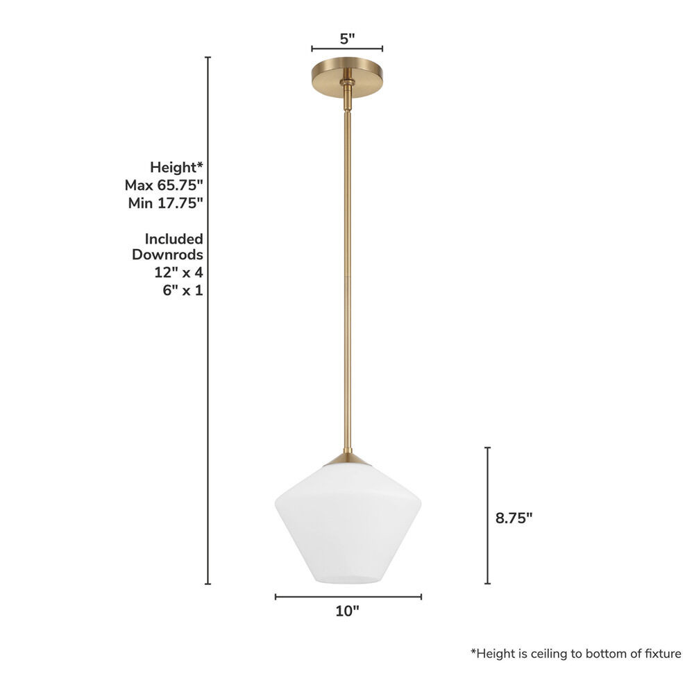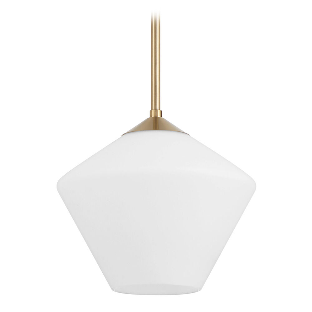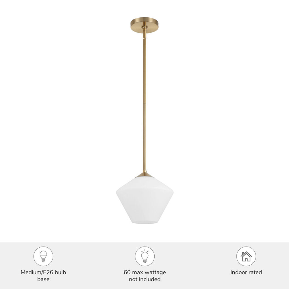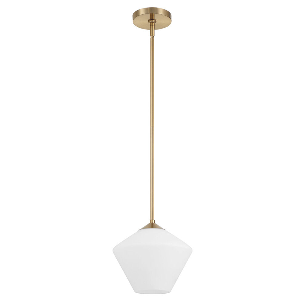 Mid-century modern alturas gold 1-light mini-pendant light with matte,cased cased white glass shade
