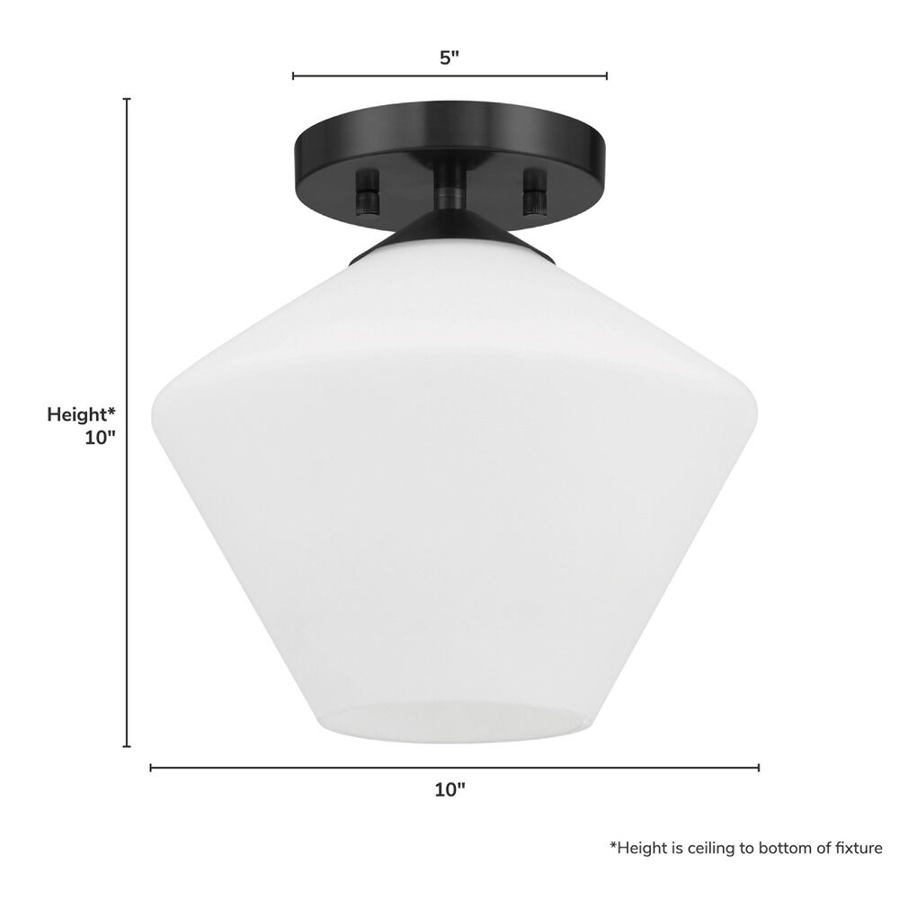 Mid-century modern matte black 1-light indoor ceiling light with matte,cased cased white glass shade