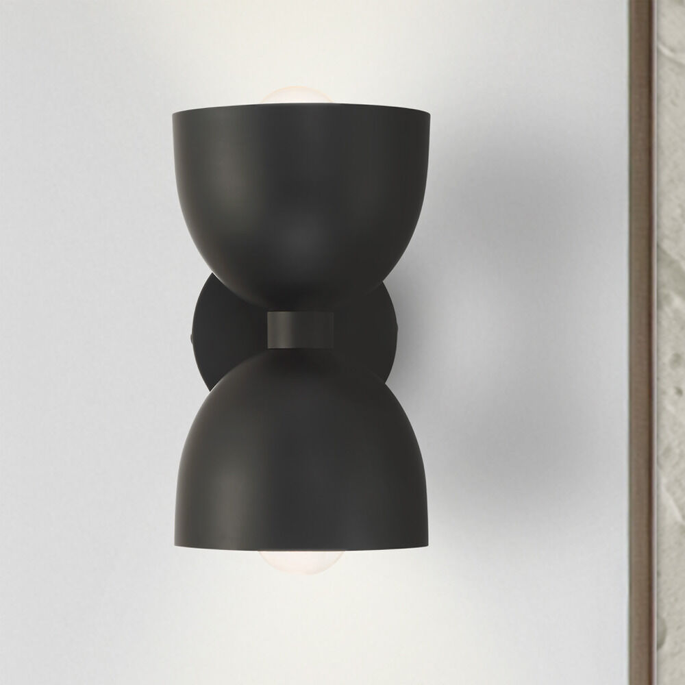 Contemporary / modern matte black 2-light sconce with matte black metal shade