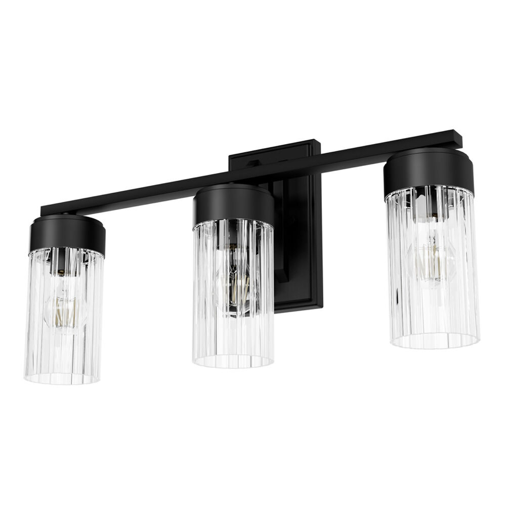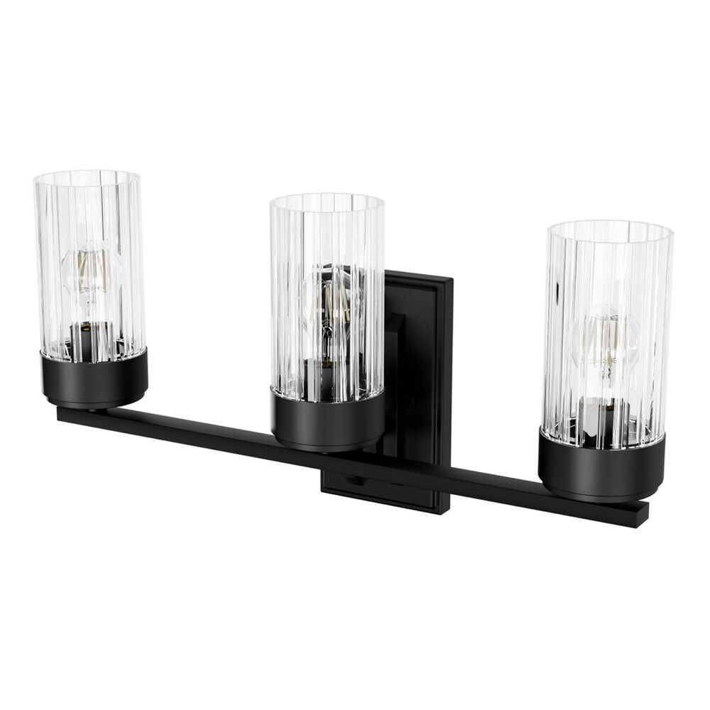 Contemporary / modern matte black 3-light bathroom light with clear,fluted clear fluted glass shade