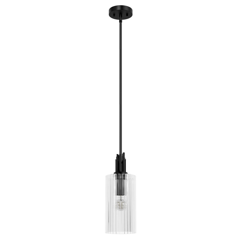 Contemporary / modern matte black 1-light mini-pendant light with clear,fluted clear fluted glass shade