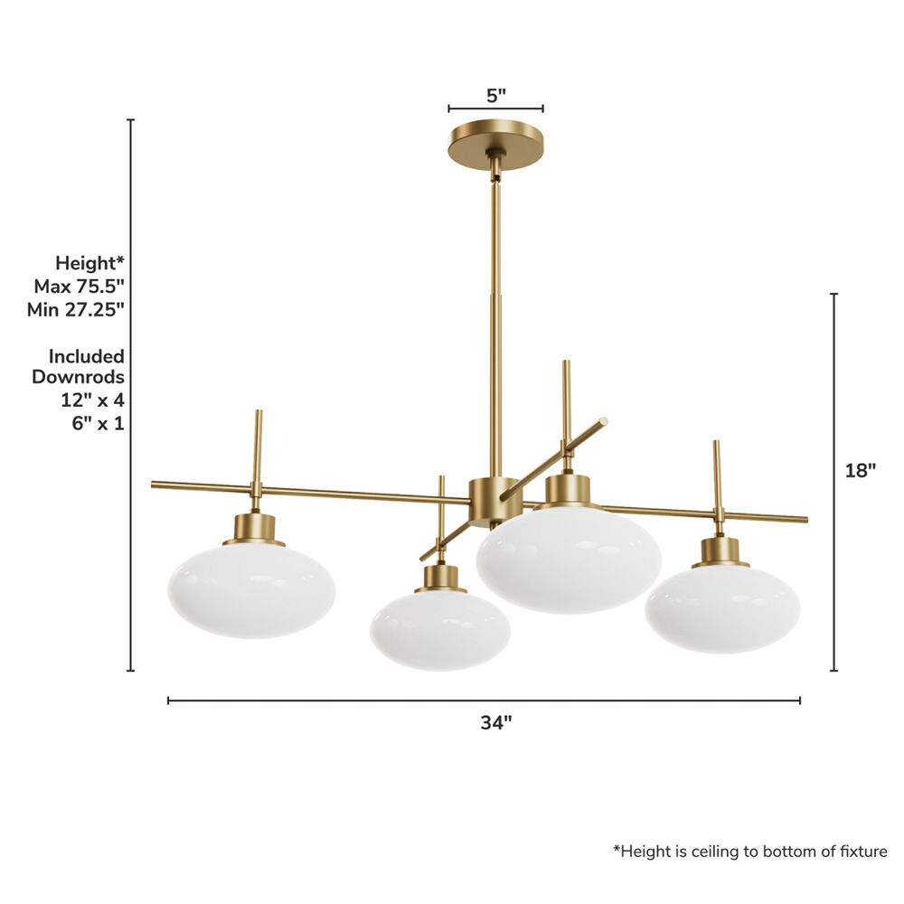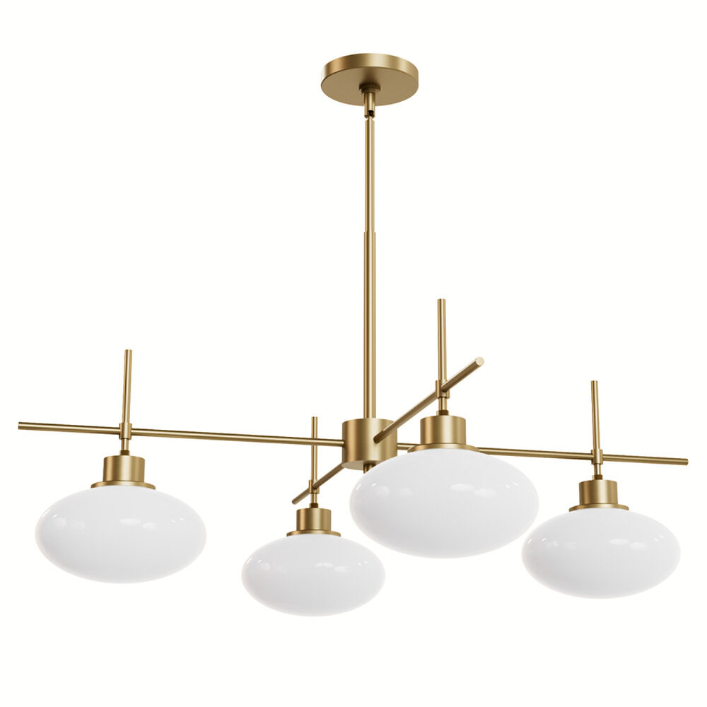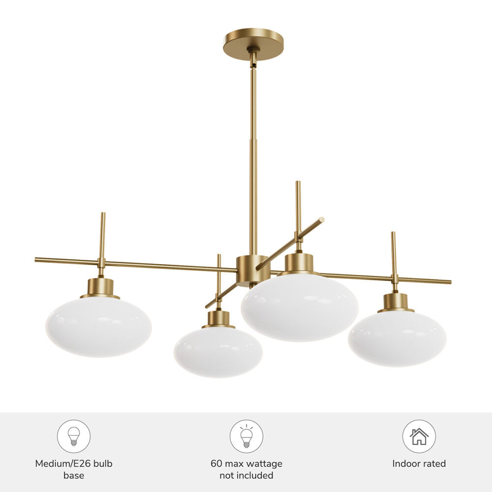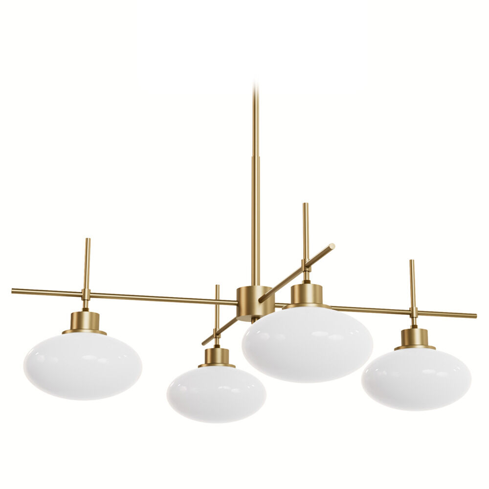 Contemporary / modern luxe gold 4-light chandelier with cased white glass shade