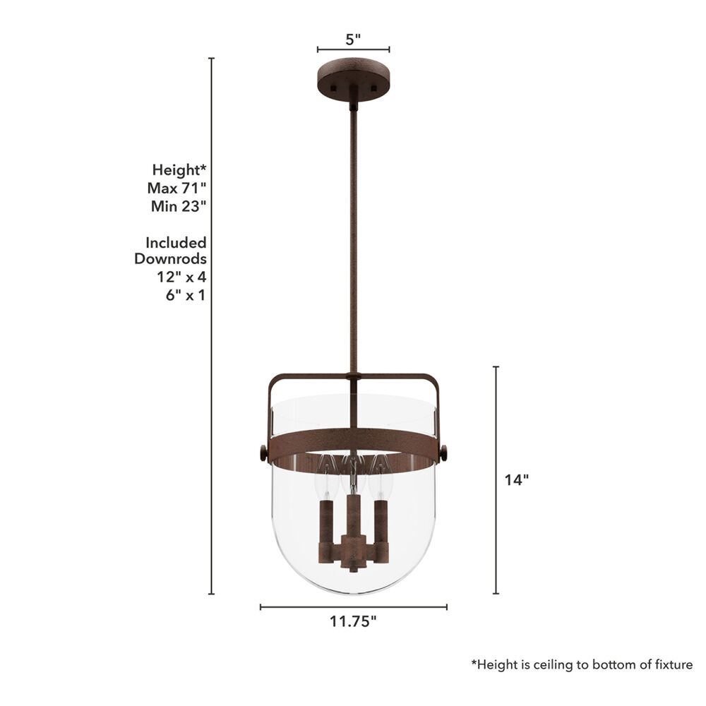 The following are detailed specifications about the Hunter Fan Company Karloff Textured Rust Pendant Light with Bowl / Dome Shade.