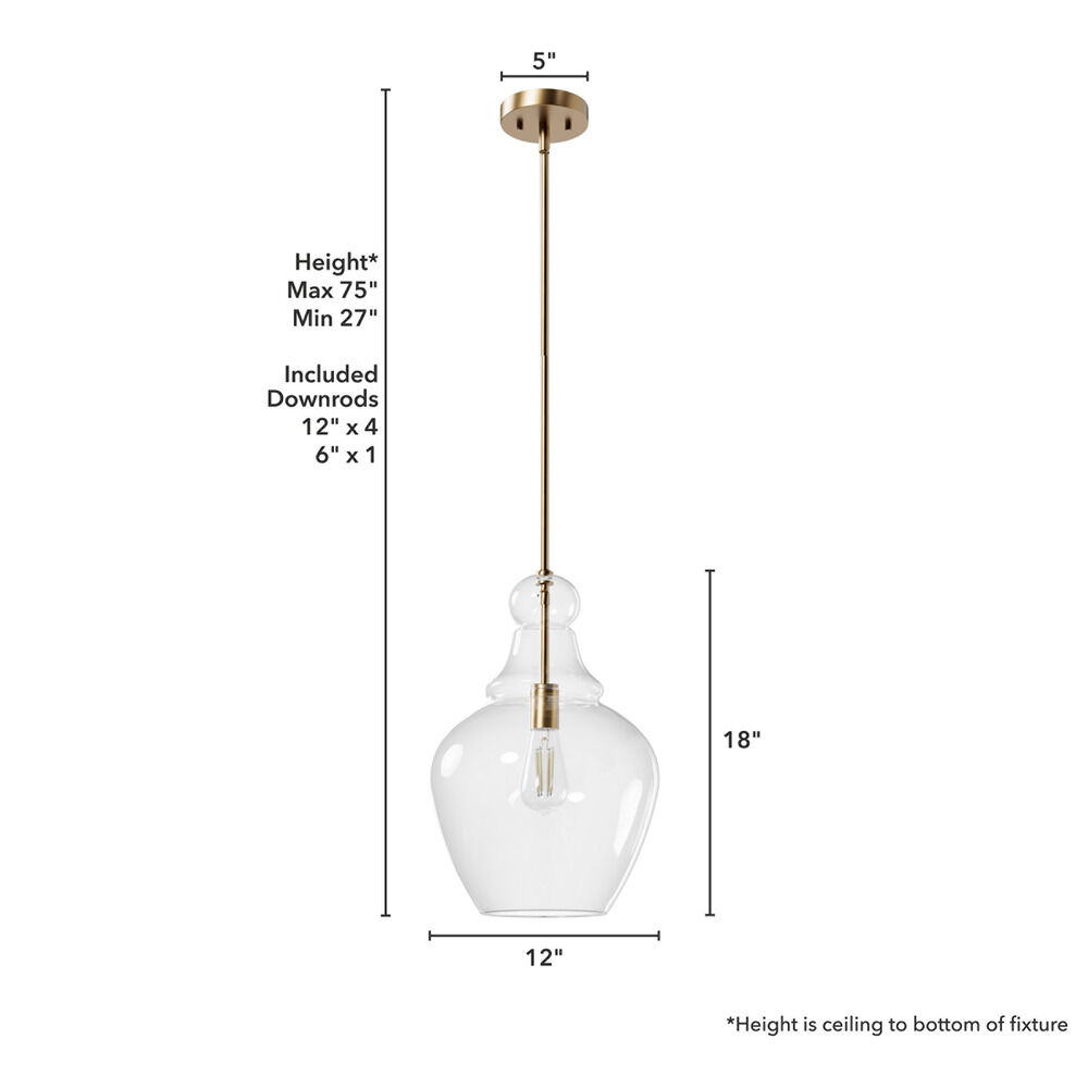Contemporary / modern alturas gold 1-light pendant light with clear glass shade