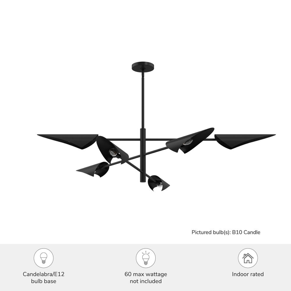 Contemporary / modern matte black 6-light chandelier with matte black metal shade