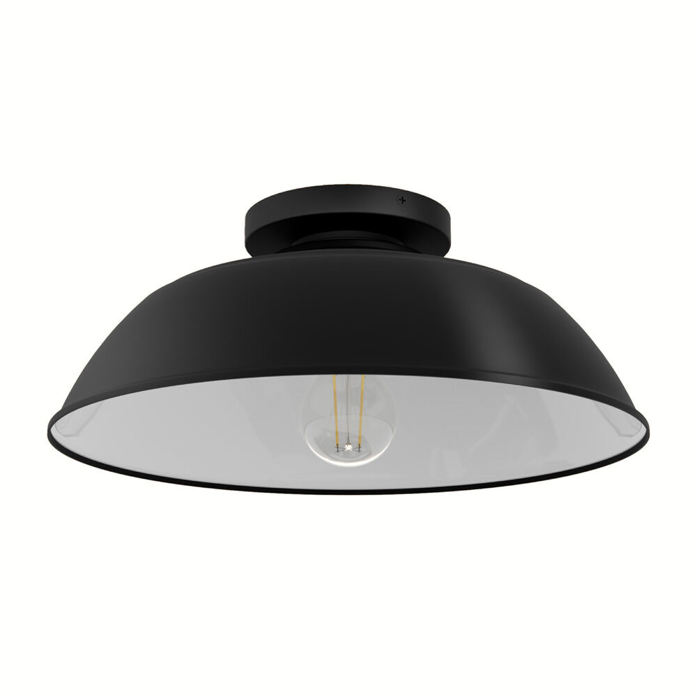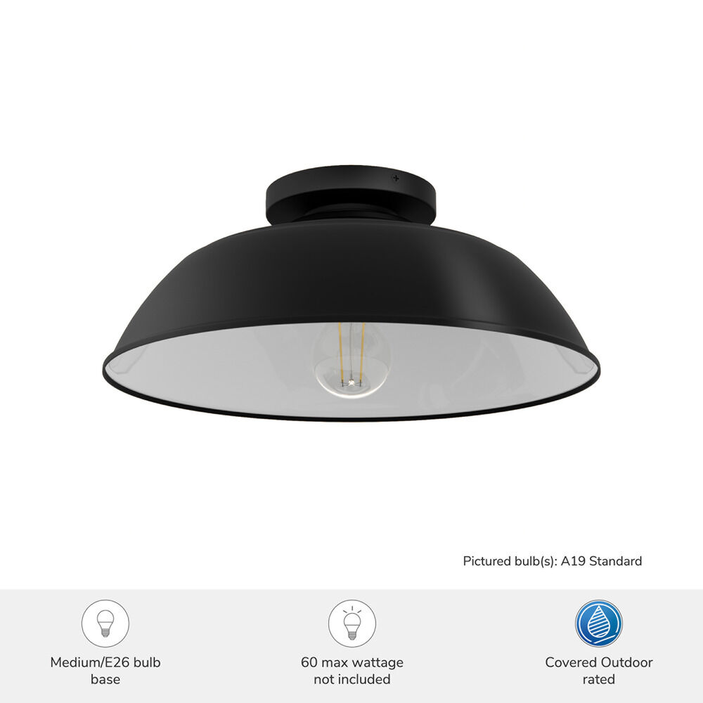 Farmhouse matte black 1-light outdoor ceiling light with matte black metal shade