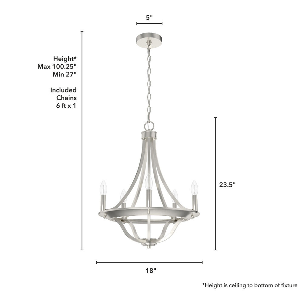 Transitional brushed nickel 5-light chandelier