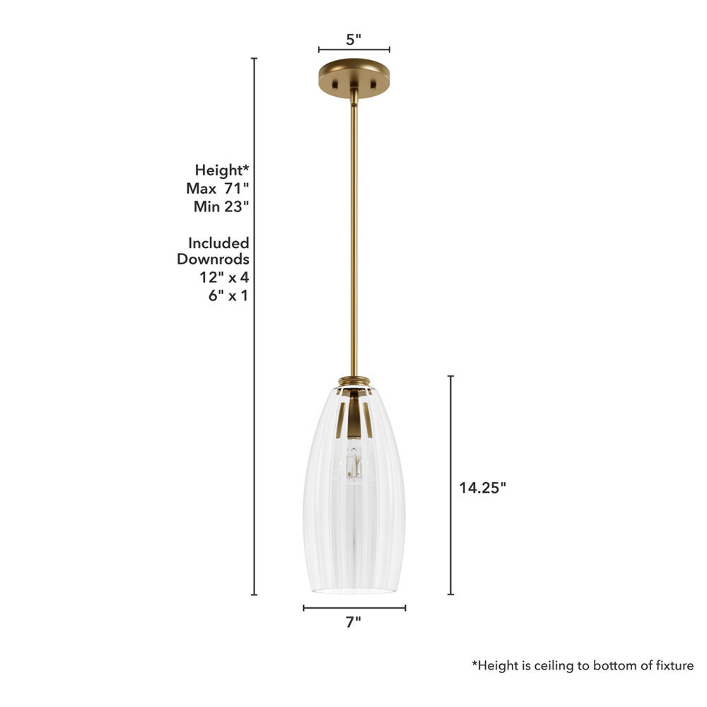 The following are detailed specifications about the Hunter Fan Company Rossmoor Luxe Gold Mini-Pendant Light with Oblong Shade.