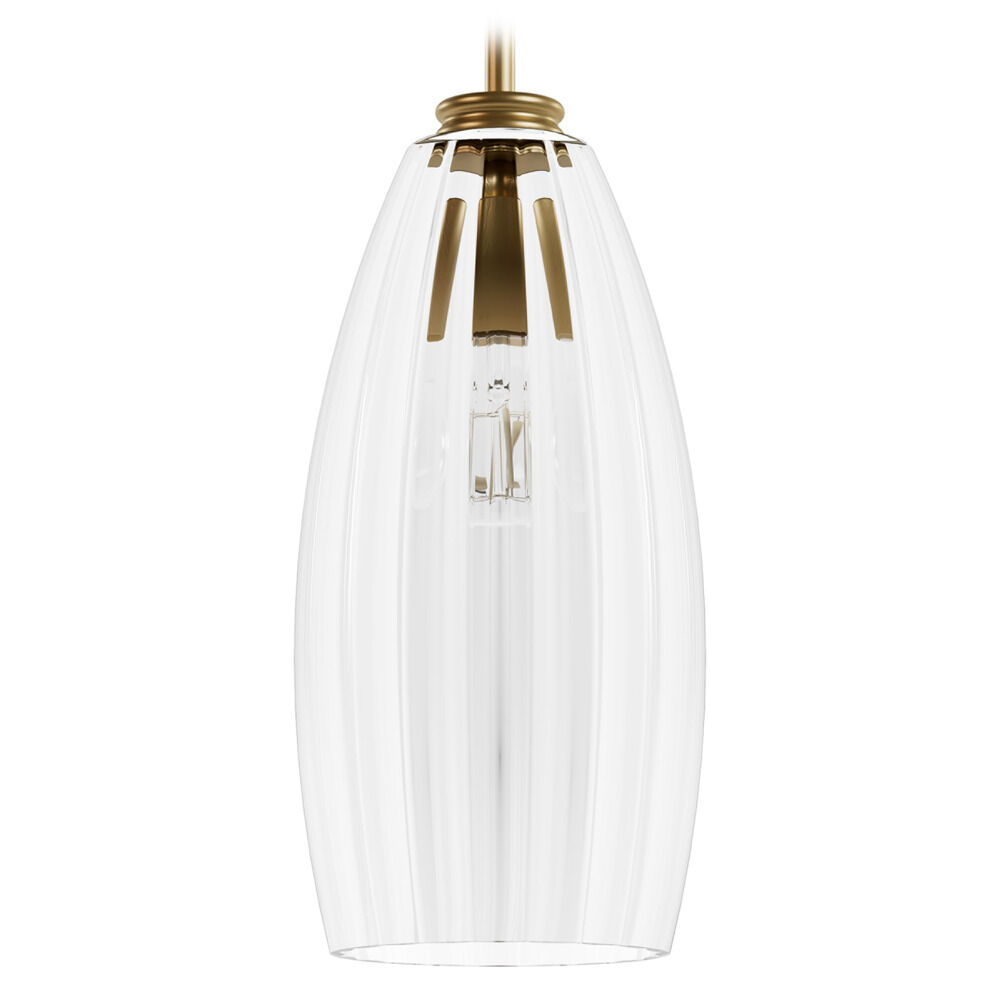 Contemporary / modern luxe gold 1-light mini-pendant light with clear,fluted clear fluted glass shade