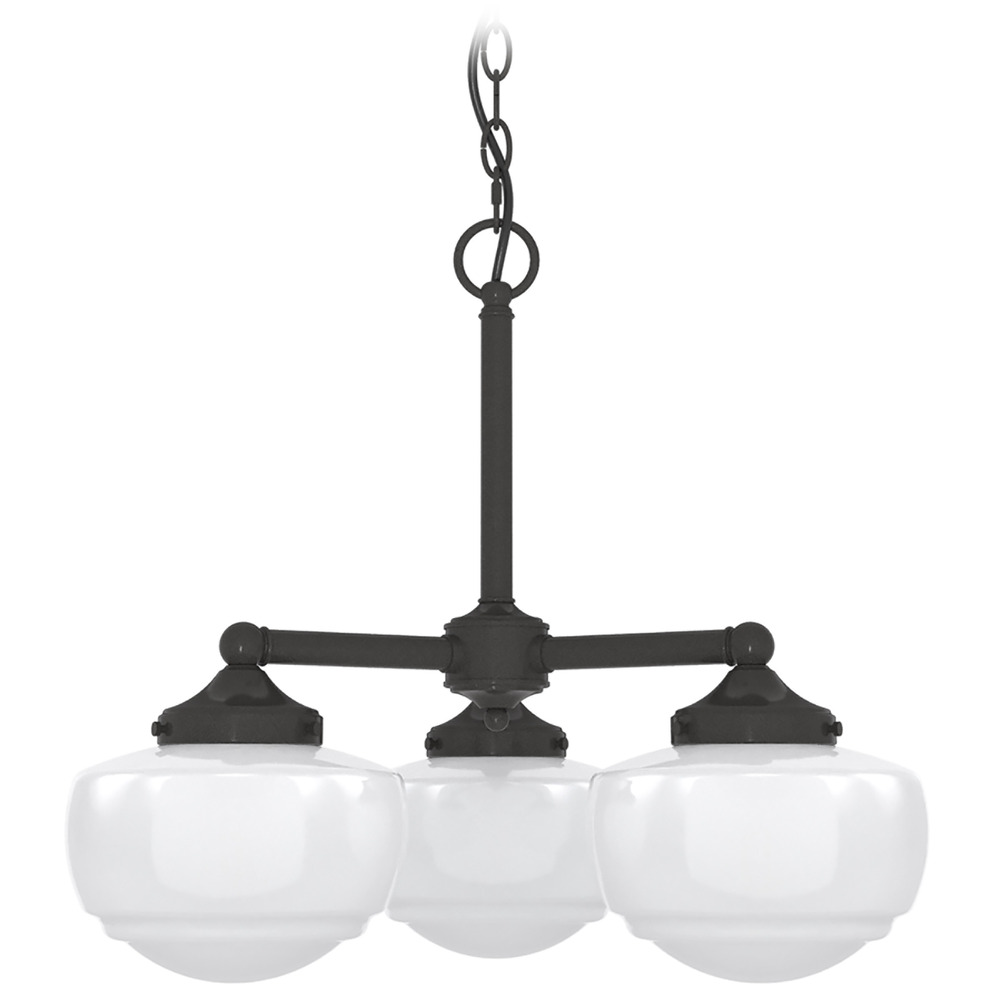 Schoolhouse noble bronze 3-light chandelier with cased white glass shade