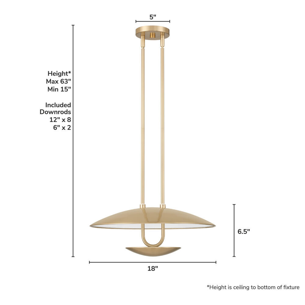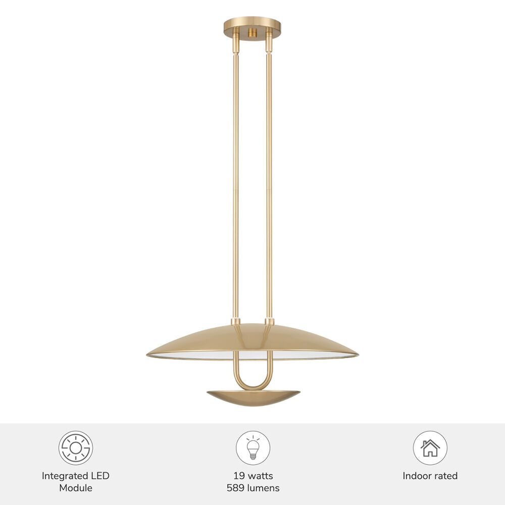The following are detailed specifications about the Hunter Fan Company Sunset Ridge Luxe Gold LED Pendant Light with Bowl / Dome Shade.