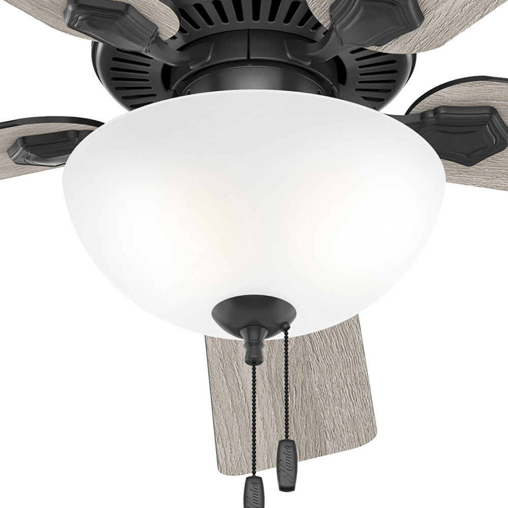 Traditional matte black 2-light indoor ceiling fan with painted,cased painted cased white glass shade