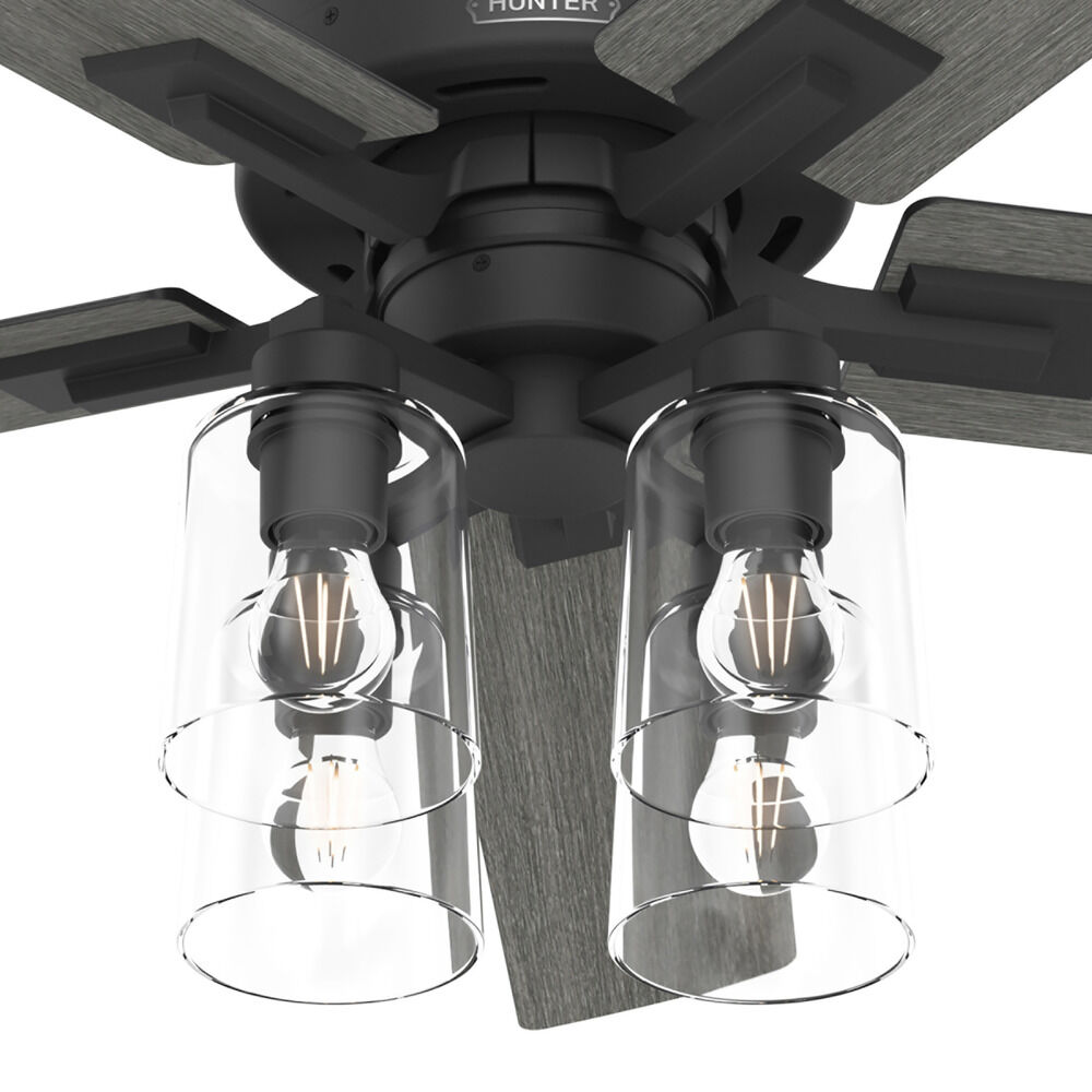 Contemporary / modern matte black 4-light indoor ceiling fan with clear glass shade