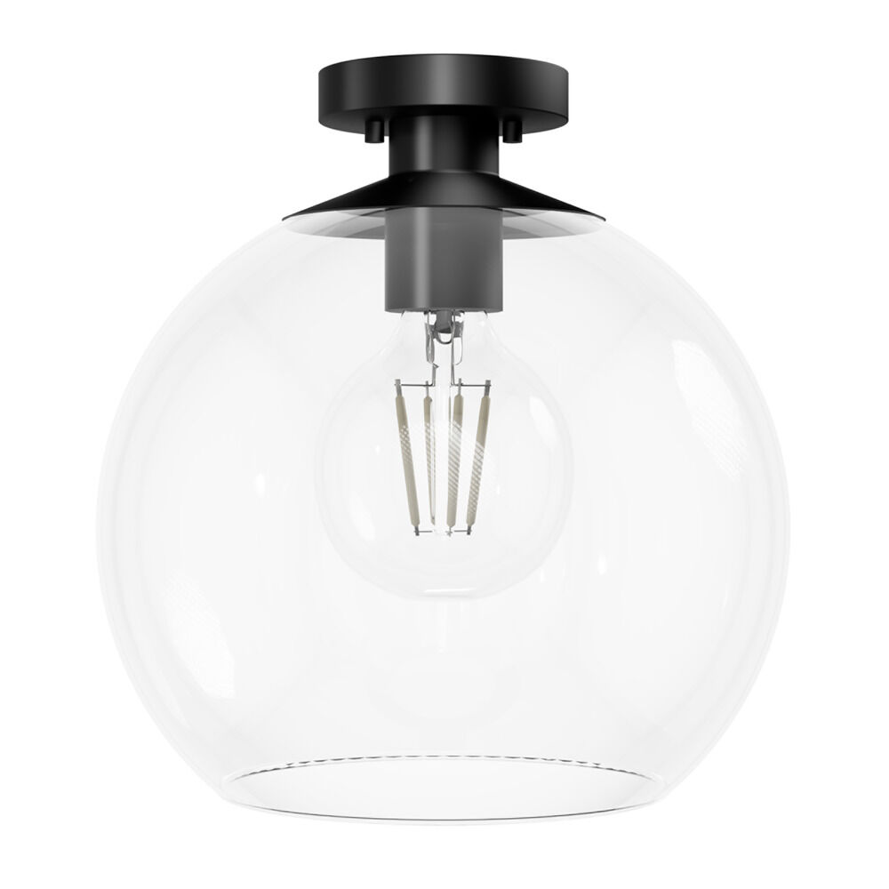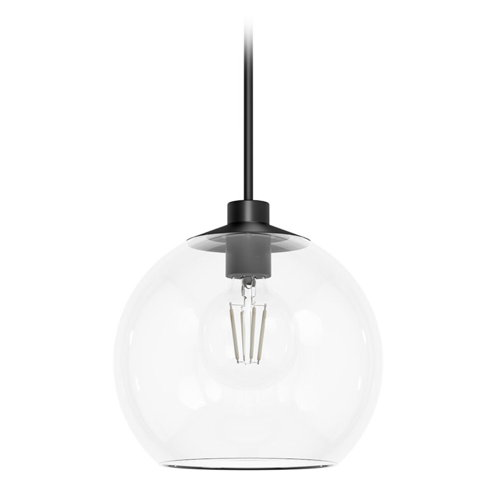 Mid-century modern matte black 1-light pendant light with clear glass shade