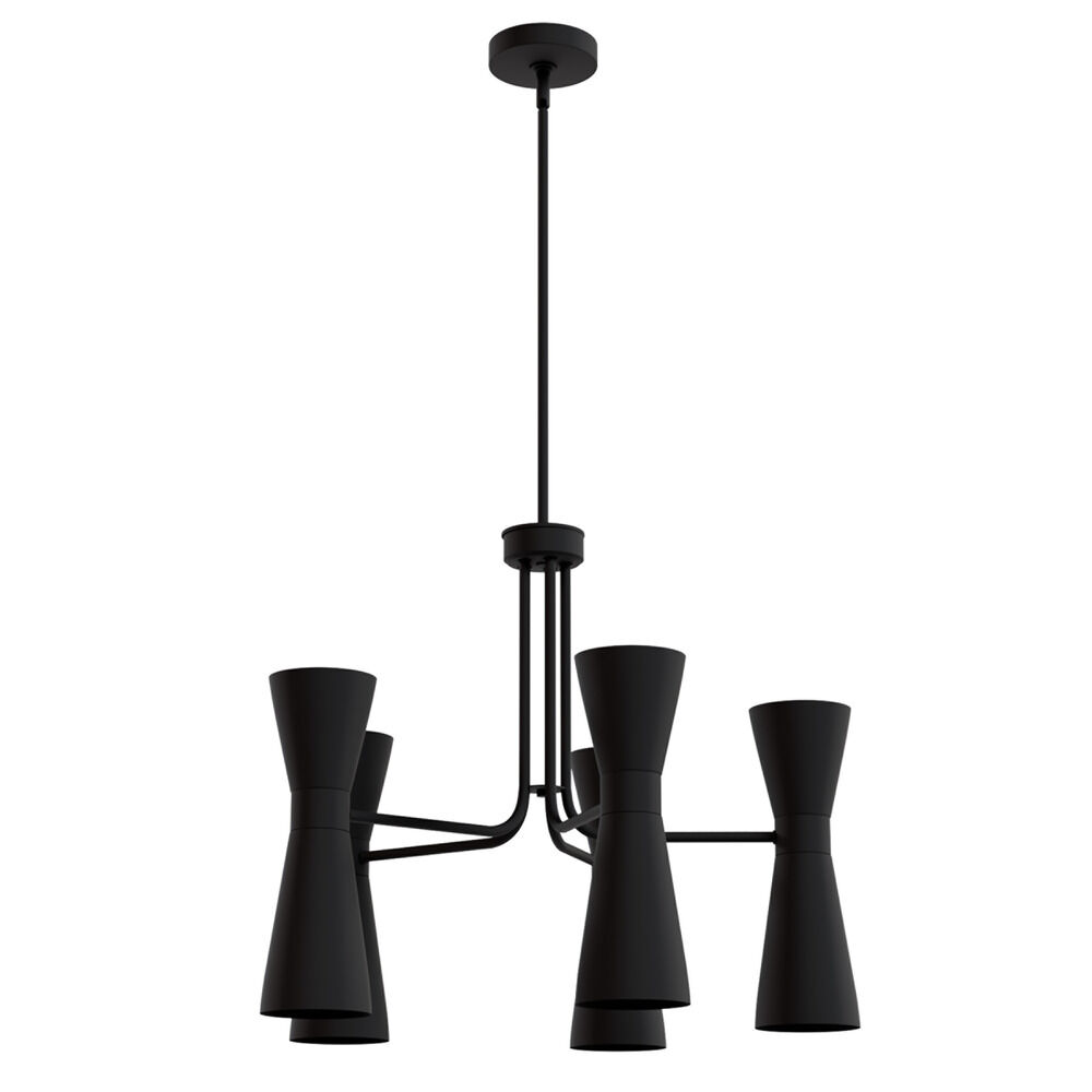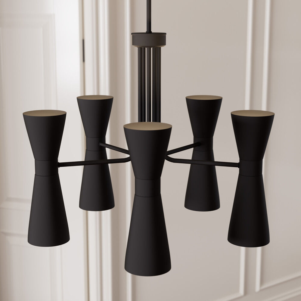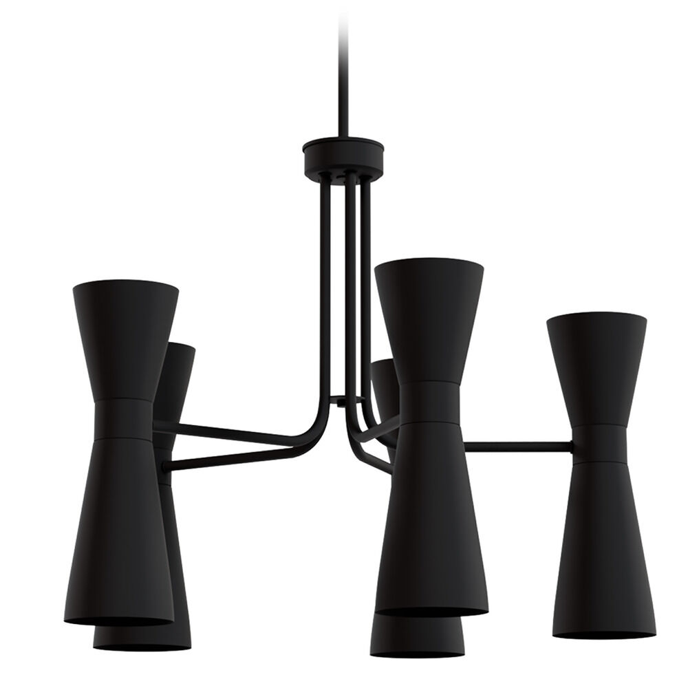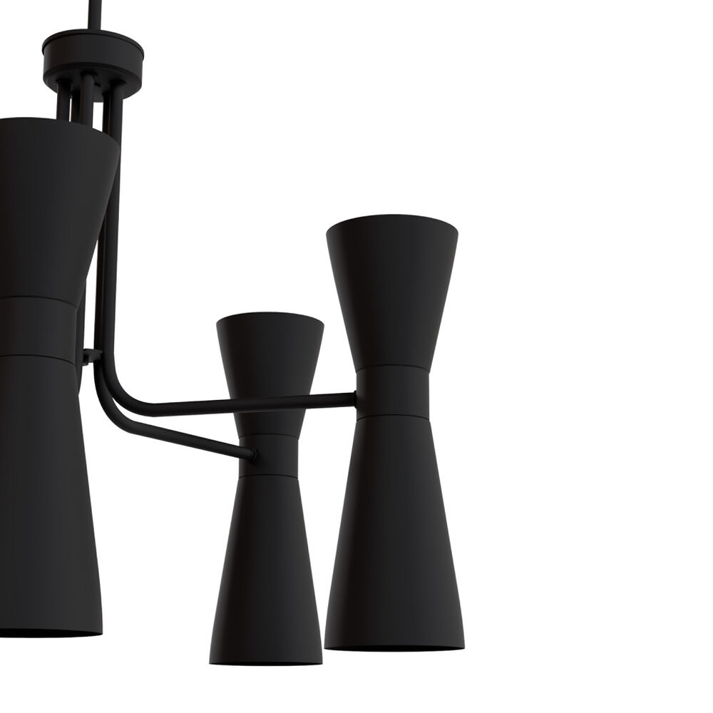 Mid-century modern matte black 10-light chandelier with matte black metal shade
