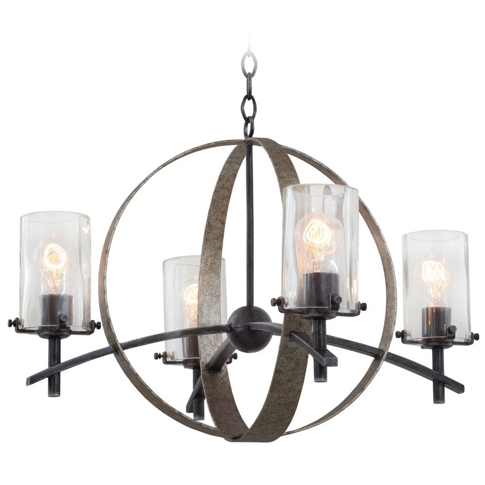 Transitional vintage iron 4 light chandelier with clear glass shade