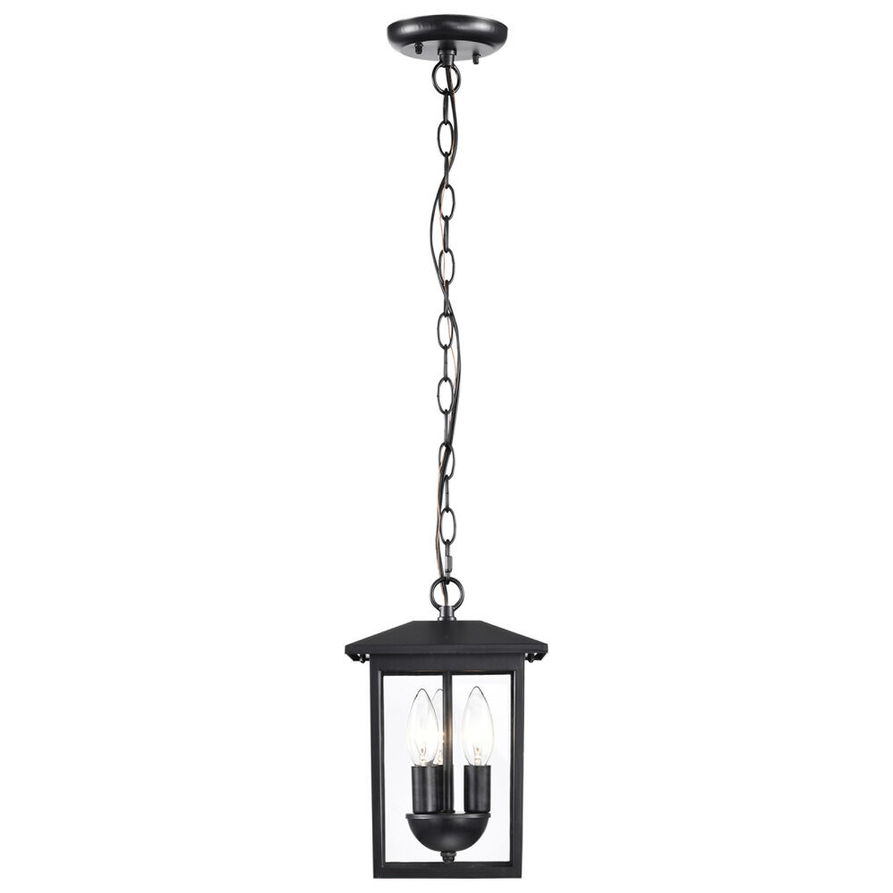 Transitional matte black 3-light outdoor ceiling light with clear glass shade