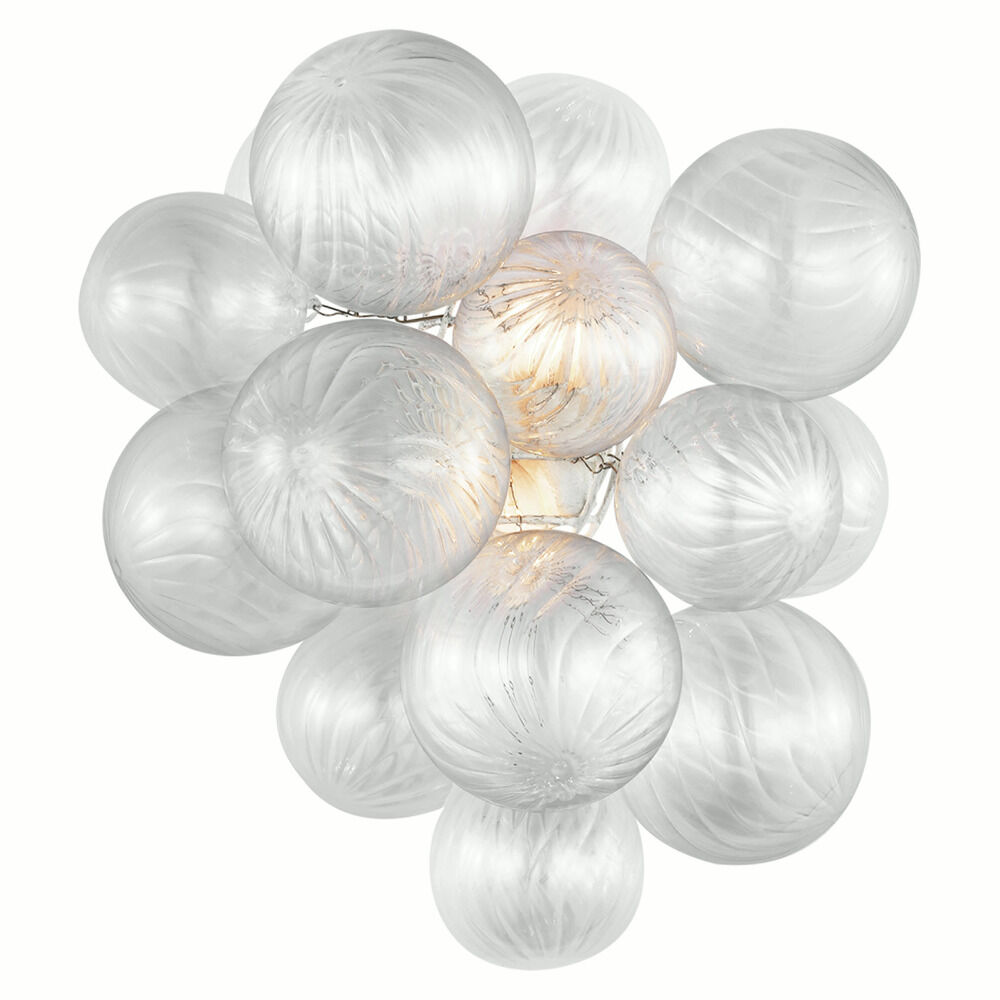 Mount Julie Neill's Talia Medium Sconce by Visual Comfort in your home's living space for a unique statement piece! The Talia features a Plaster White finish, as well as a cluster of Clear Swirled glass orbs. The Talia requires two 2.5W maximum candelabra base LED T6 light bulbs. This fixture is rated for Damp Location.