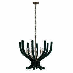 The Coral Chandelier by Kalco Lighting transforms organic inspiration into a luminous work of art. Drawing from the natural grace of coral branches and the glimmer of water droplets, the design features transparent or soft green glass beads delicately balanced on slender, branch-like arms. Each bead acts as a magnifying lens, capturing and refracting the light to create a shimmering effect reminiscent of raindrops resting gently on leaves or flower petals.